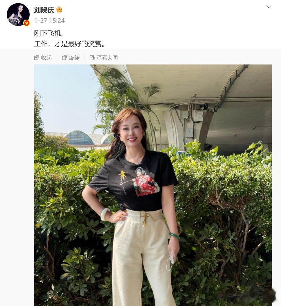刚下飞机,刘晓庆的状态是:“工作,才是最好的奖赏!”