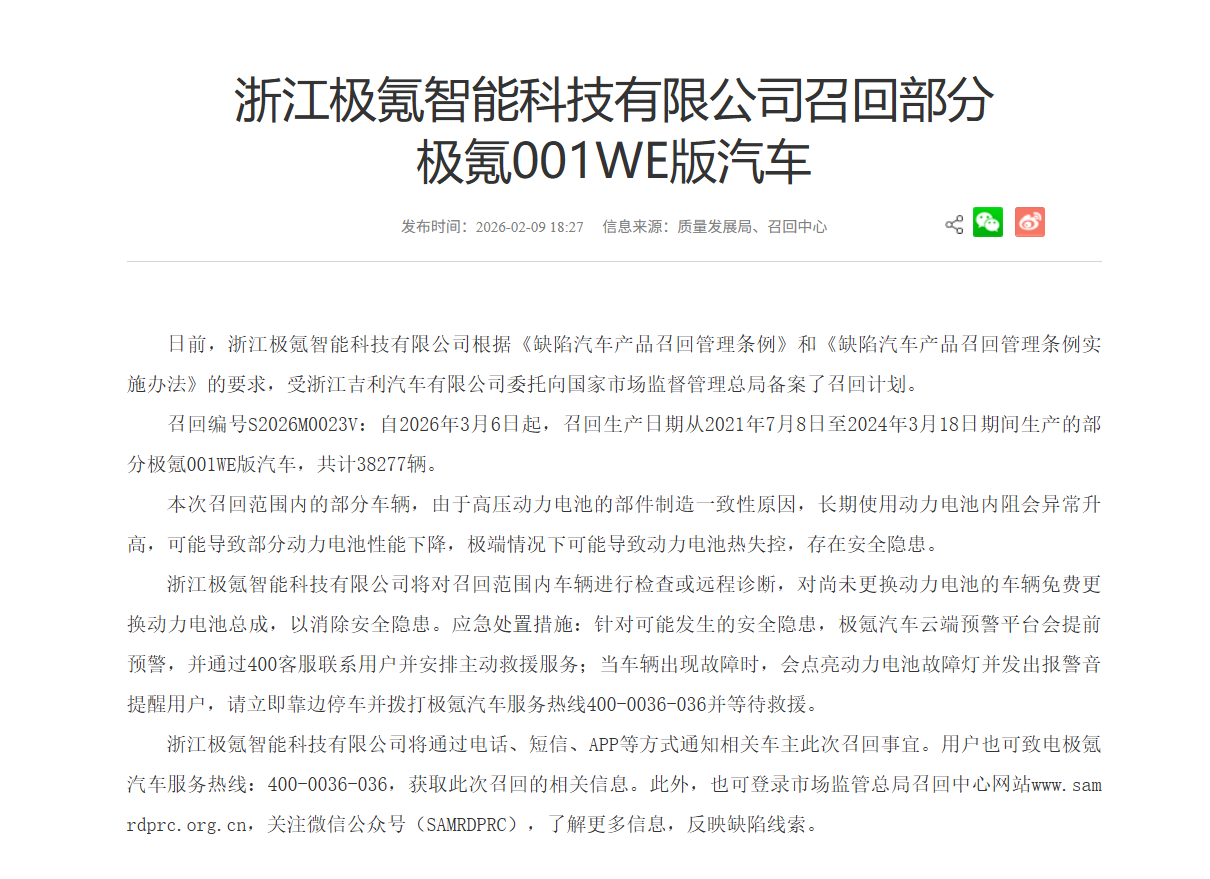 作为极氪001的老车主,这次看到召回公告反而有点感慨,打心里觉得极氪在越变越好,售后也更温度了!