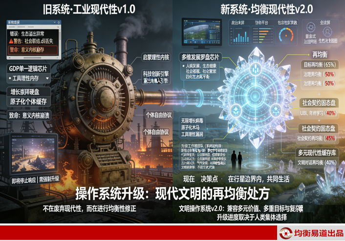 这种普遍困境,并非局部政策的失误或单一文明的衰落,而是一种文明层面的“现代性综合征”。它源于工业革命以来主导全球的现代化范式——一种以无限经济增长、工具理性至上、个人主义原子化及对自然征服为核心逻辑的文明操作系统——在逼近其内在逻辑极限与外部资源边界时产生的系统性紊乱。本文旨在运用“均衡论”作为诊断框架,剖析这一综合征的病理,并指出:人类文明的出路,不在于废弃现代性,而在于对其进行一场深刻的“均衡性修正”,构建一个能兼容多元价值、多重目标与复杂约束的新操作系统。