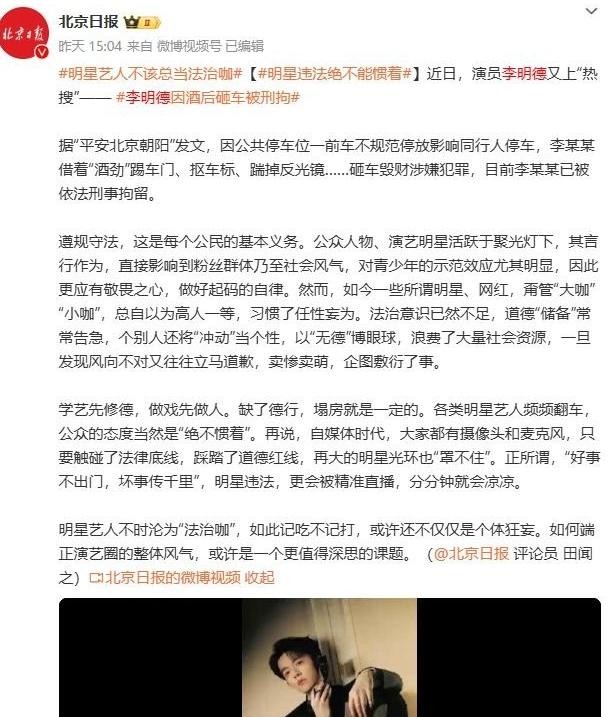 在2025年开年就爆出大瓜的李明德,也因为酒后砸车被抓。