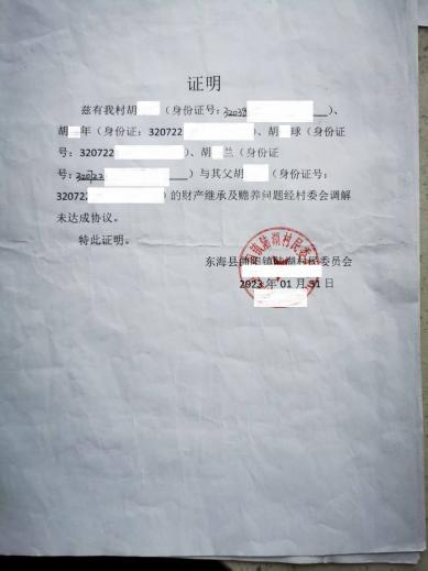 赡养矛盾证明 图一 (当事人提供)