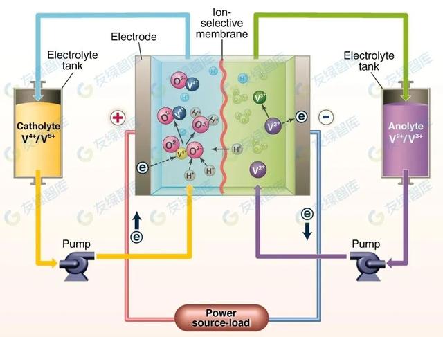 氧化还原液流电池可用作燃料电池或可充电电池。它们由两个相互连接的储罐组成,每个储罐都包含电解质液体和带相反电荷的电极,离子通过一个膜从一个储罐传递到另一个储罐。氧化还原液流电池的使用寿命比锂电池更长,因为电流从一个储罐流到另一个储罐不会使膜降解。