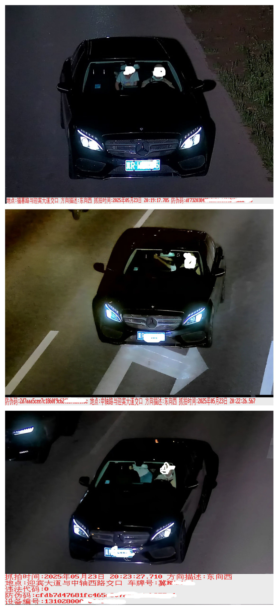 几乎同一时间,63岁的王某驾驶奔驰小轿车,沿迎宾大道主路第三车道(直行与左转共用车道)由东向西行驶。这辆车正以远超路段限速的速度接近路口—— 最终的司法鉴定确认,其碰撞瞬间车速高达86-93km/h,而该路段限速为70km/h,红绿灯路口严重超速幅度达30%。更危险的是,王某的驾驶状态已被严重干扰。警方提取的车内监控及关键时间点照片显示,事故前87秒(20时23分27秒),王某8岁的孙女马某(化名)未系安全带,正在主副驾驶位之间不安份地活动,导致司机王某身体被迫紧贴车门,右侧视野出现明显盲区。这种干扰持续至碰撞瞬间。