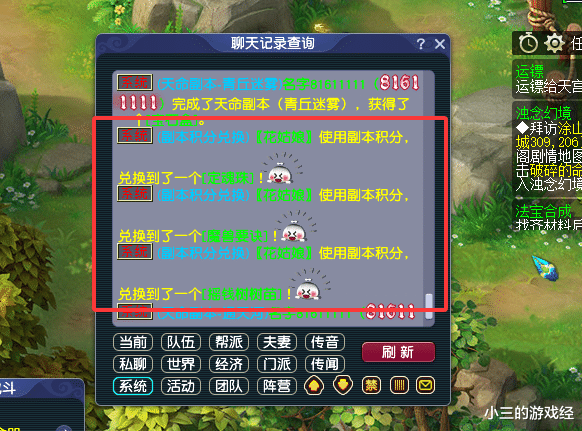 副本积分换五彩灵石也不错,给的都是五宝兽诀树苗