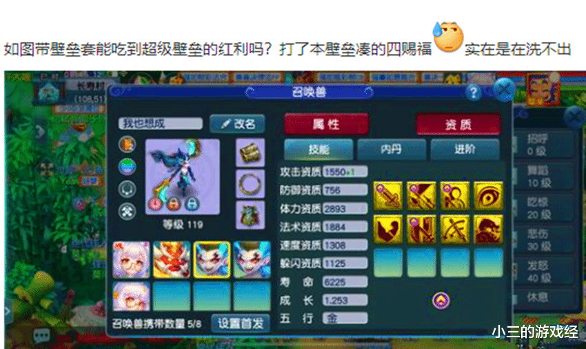 上面这位玩家想问的问题是上面的这只召唤兽触发了超级壁垒击破,在这种情况下带的壁垒的套装是否也会被升级为超级壁垒击破,答案肯定不是的。上面的这只召唤兽哪怕是在触发超级壁垒击破的情况下,触发的壁垒的套装效果使用的也是壁垒,不会有超级技能的加持。所以上面的这只召唤兽平时就当一只七技能全红来用吧,等被封印了物理输出能力以后再使用壁垒击破造成攻击。