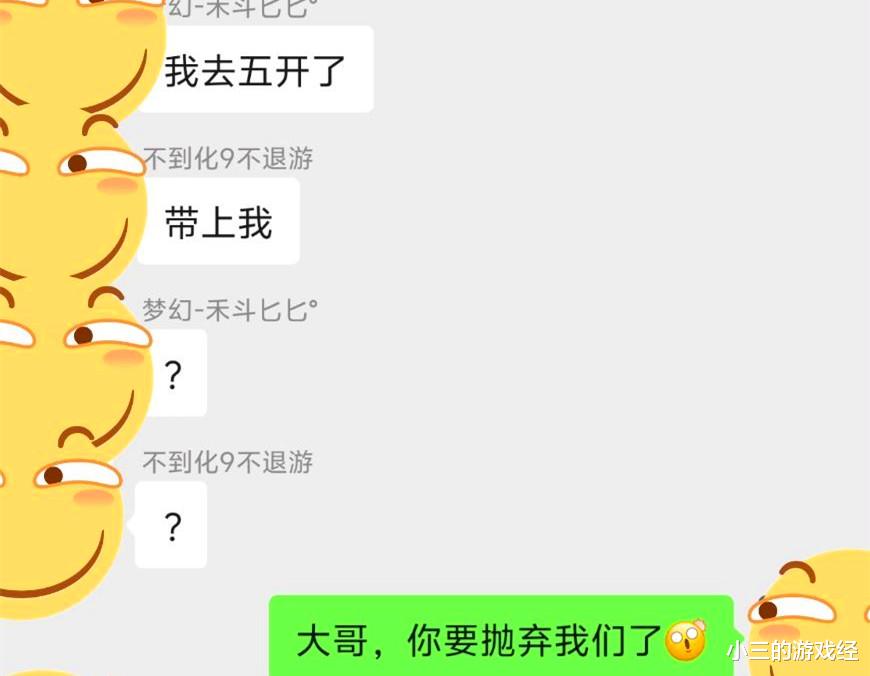 上面这位玩家的天塌了,原因是上面这位玩家之前在游戏内是有着固定队伍的,上面这位玩家的固定队伍中有一位职业带队的队长,但是现在固定队伍中作为职业带队的队长却直接变成了5开,这对于队伍中剩下的那4名队员来说,无异于晴天霹雳,职业队长变成5开了,他们剩下的这4个人就变成了没有人带队的散人了,上面的这4位被剩下的玩家就只能在游戏中混队了。