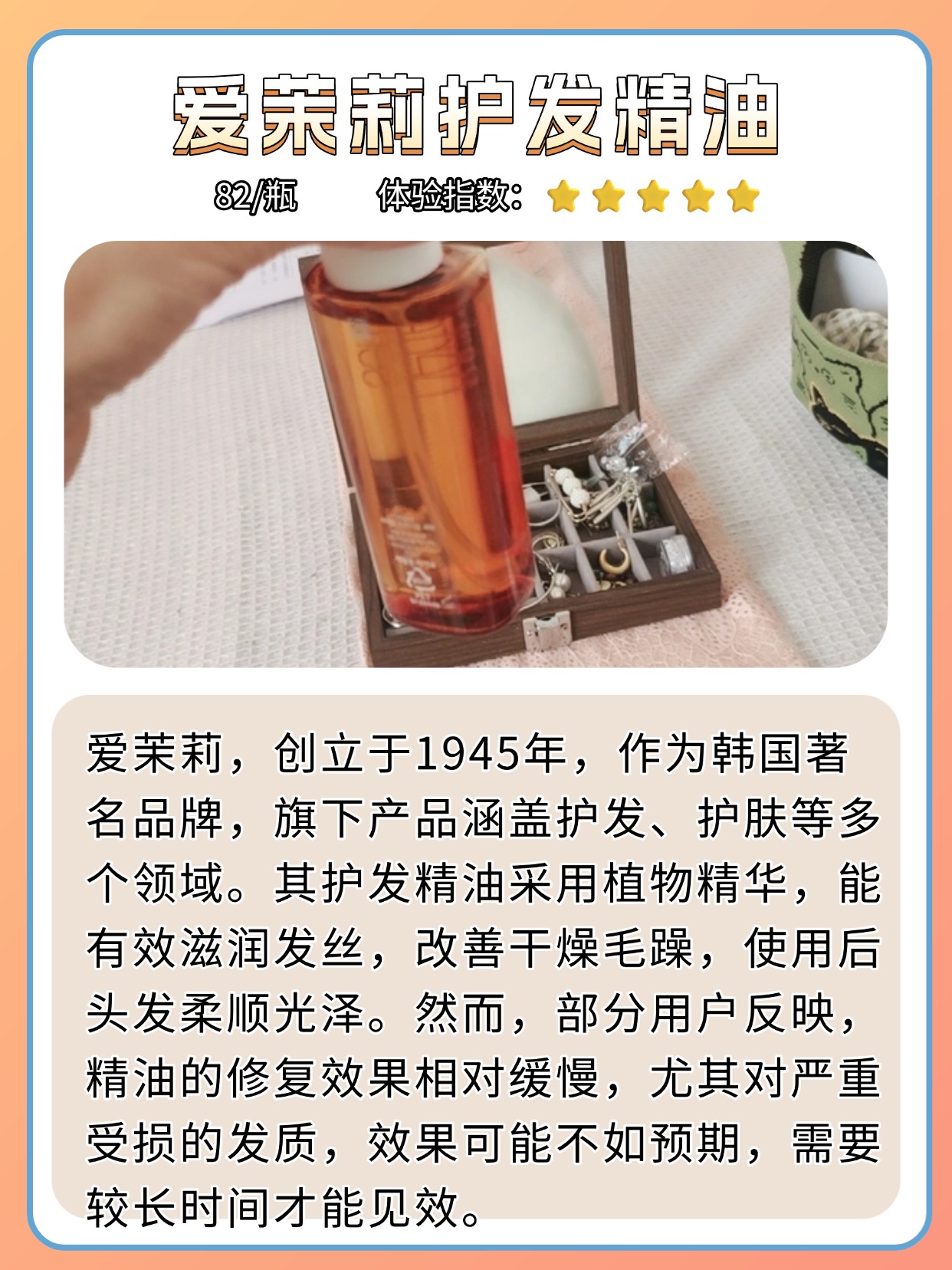 最近爱茉莉护发精油的咨询量飙升,好多姐妹问这个牌子怎么样,作为常年做测评的人,我只能说它是市面上比较有争议的一款进口精油。先回答大家最关心的问题,护发精油长期用有危害吗?答案是不会!只要控制好用量、选对类型,就能好好滋养头发,我身边长期坚持用精油的姐妹,发质都比不用的好很多,就是要注意避免过量导致发丝沉重。爱茉莉这款的成分和质地是大家讨论最多的点,不用盲目跟风看所谓的“第一名”标签。下面是我总结的一些护发精油选购注意事项,干货满满,新手姐妹可以先收藏起来,避免踩坑。