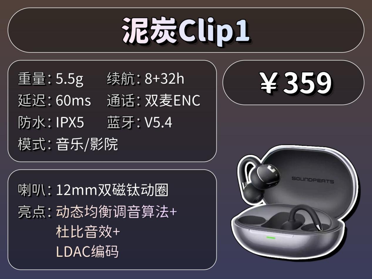 推荐理由:具备扎实的声音表现与稳固佩戴体验的耳夹耳机