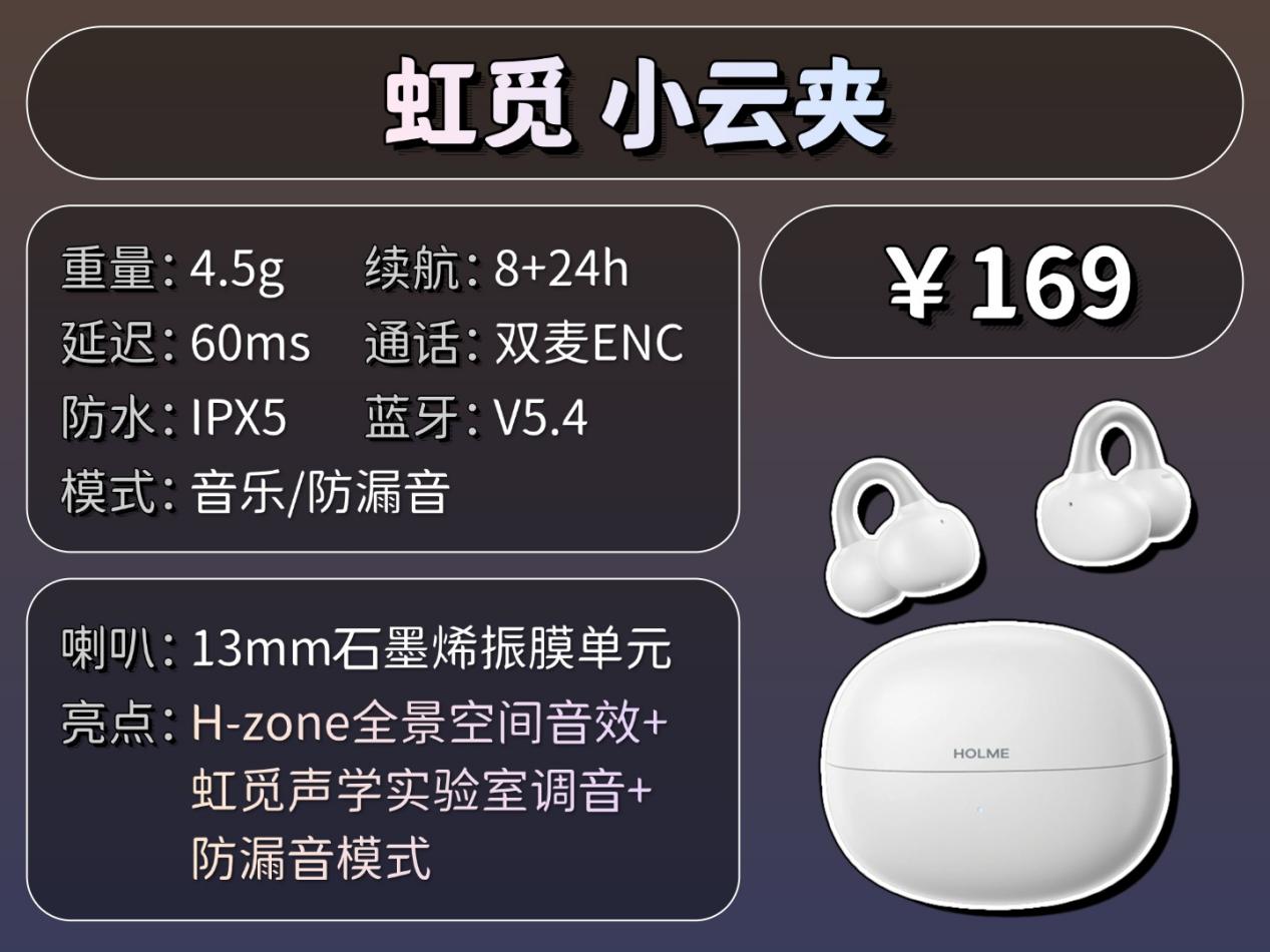 虹觅(HOLME):专门做耳机的品牌,这个品牌并不算老,但它家每款耳机都很用心,尤其是佩戴和音质这块特别出彩,主打高性价比,可以说是真的是从咱们消费者的实际需求出发做产品。