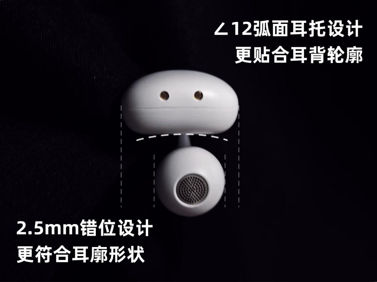 在佩戴上采用2.5mm的错位设计,更贴合耳朵轮廓,戴着更稳,还有∠12弧面耳托,能紧贴耳背,分散压力,戴着会更舒服;结合仅4.5g的机身,就算戴一下午都会舒适无感。性能上支持防漏音模式,打开时会输出与漏音相反的声波抵消漏音,在安静环境用更放心,还有HBC智慧双联,两只耳机可以独立连接两个设备,单独使用,续航也能满足全天使用。虽然外形设计较为简洁,但有着佩戴舒适、防漏音强的均衡体验,是百元档兼顾通勤、学习的高性价比的选择。