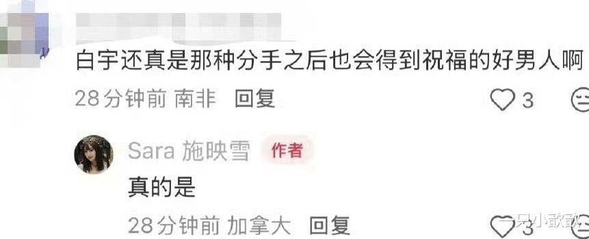此次前女友的发文,意外地强化了白宇低调踏实的公众形象,与以往娱乐圈中常见的“前任撕X”剧情不同,这次Sara施映雪的长文充满了温情与祝福,没有爆料、没有指责,只有对过去美好时光的怀念与对白宇未来的期许,这样的“前任文学”不仅让网友看到了娱乐圈中难得的真情流露,也为白宇赢得了更多的好感与支持。