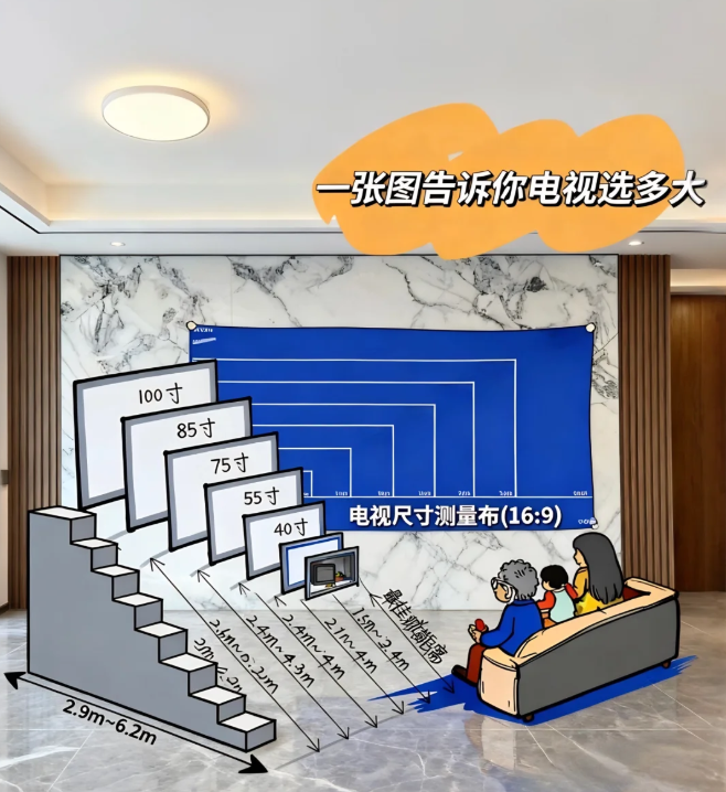 建议,按照下图挑选适合的或大一号的,这样可以达到最好的观影和装饰效果。