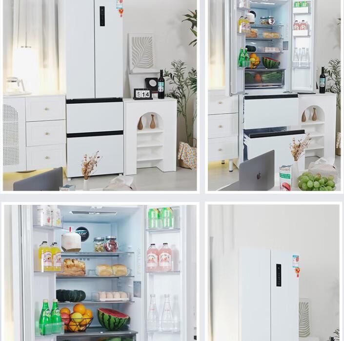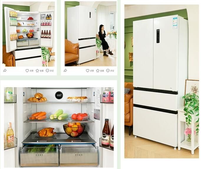 客厅小就选薄一点的冰箱,这样不占空间,具体选择多大的冰箱,还要看实际尺寸,根据冰箱位的尺寸来买冰箱,空间能充分利用。小尺寸大容量看看美菱400法式四门冰箱,尺寸601x635x1911mm,冰箱厚63.5cm。因为是底部散热,左右都不需要预留散热空间。