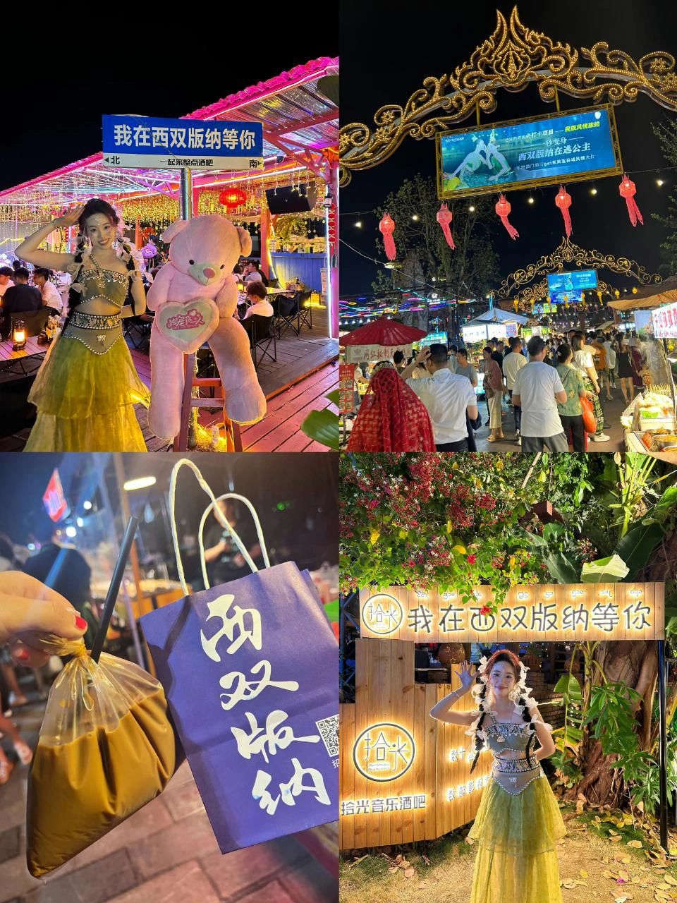 5.星光夜市:版纳必打卡的景点,一到晚上就非常热闹,各种摊子供你逛吃逛玩,大金塔、六国水上市场就在这里,也可以坐船旅拍,浪漫✨