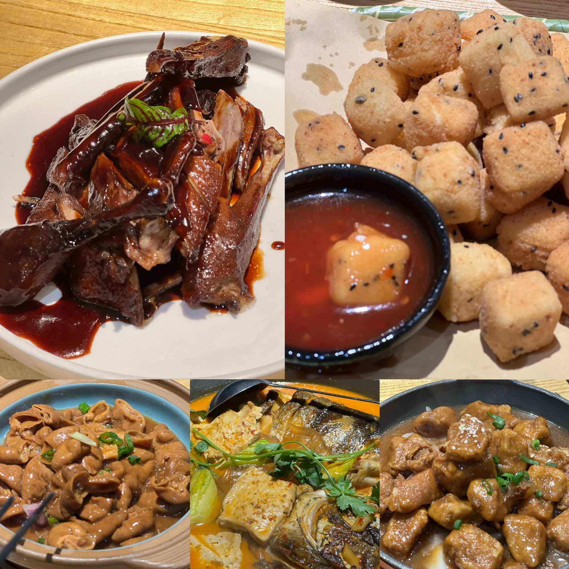 3江南外婆桥(月河街店):平价实惠也好吃,外婆土烧鱼头(还行),招牌红烧大肠(好吃),外婆酱鸭(一般),招牌黄金豆腐(必点),铁板芋艿(还行)