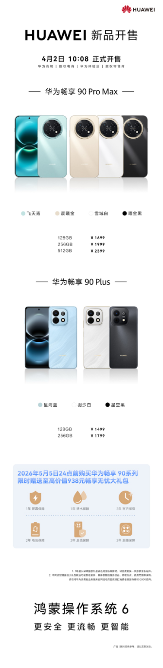 从价格来看,华为畅享 90 Plus国补后仅需1275元起,Pro Max版更是国补后低至1445元起。如此亲民的价格,却提供了旗舰级的综合体验,加上“畅享无忧大礼包”的额外保障,华为畅享 90系列无疑成为了2026年千元档市场的“卷王”。它证明了,在有限的预算内,依然可以拥有全面、可靠且充满科技感的智能生活。