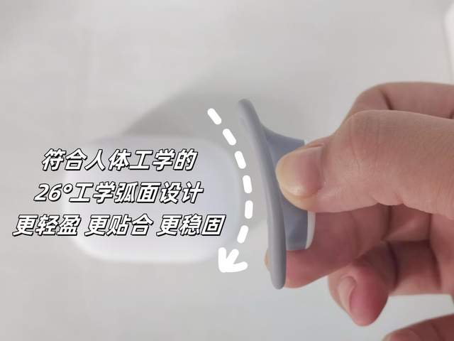 佩戴上,耳机侧面呈现出明显的弧面设计,这源于虹觅采集1000+亚洲人耳数据打造的∠26°工学弧面,能让佩戴时更贴合耳部,提升舒适性与稳固性。同时单耳仅6.8g,采用硅胶材质,长时间佩戴几乎无压力。