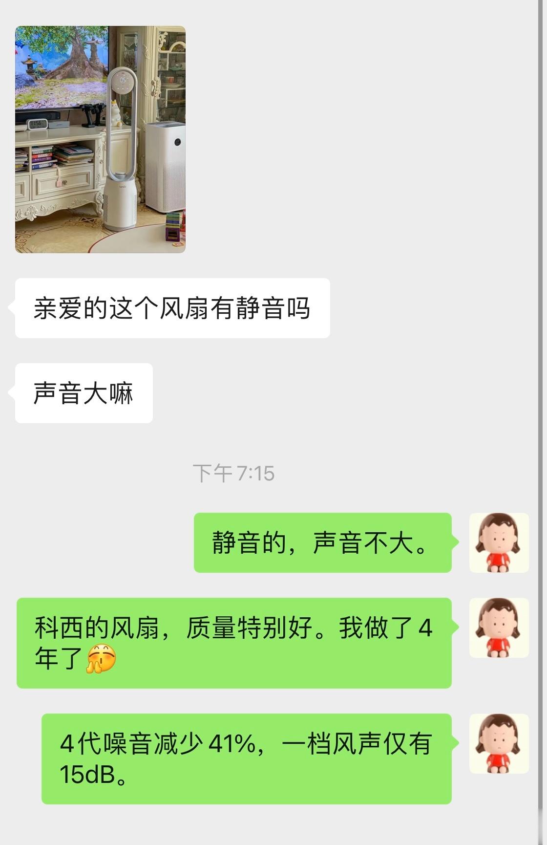 无叶风扇科西家真的厉害,我用了四年依旧静音,风速又大又舒服,质量特别好。