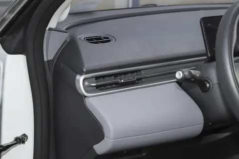 更让人惊喜的是,它配备了同级少见的无框车门,这种以往多见于豪华轿跑的配置,在这个价位的小车上得以实现。上下车时没有门框阻碍,不会勾到裙摆,姿态更显优雅,停在公司楼下或商场门口也很有辨识度。车内采用新增的绿白拼色内饰,搭配 1.0 平方米的巴黎菱格纹皮质包覆,中控台、车门板等触感柔软,缝线工整,做工远超同价位车型的常见水平,坐进车内就像进入了精心布置的专属小空间,精致又治愈。
