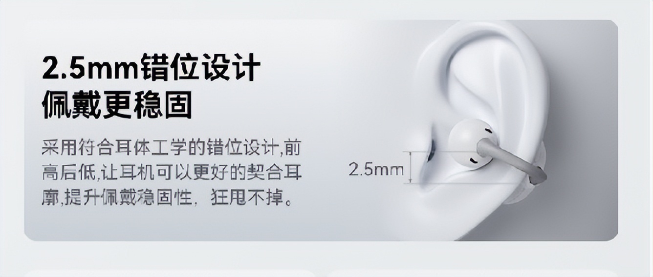 虹觅这款的佩戴我很满意,它戴起来不挑耳朵,2.5 毫米错位设计能刚好卡在耳廓上,再加上有个12°弧面耳托撑着耳背,走路、低头做事都不会晃,而且单只才 4.5 克重,戴一下午耳朵也不酸不闷。