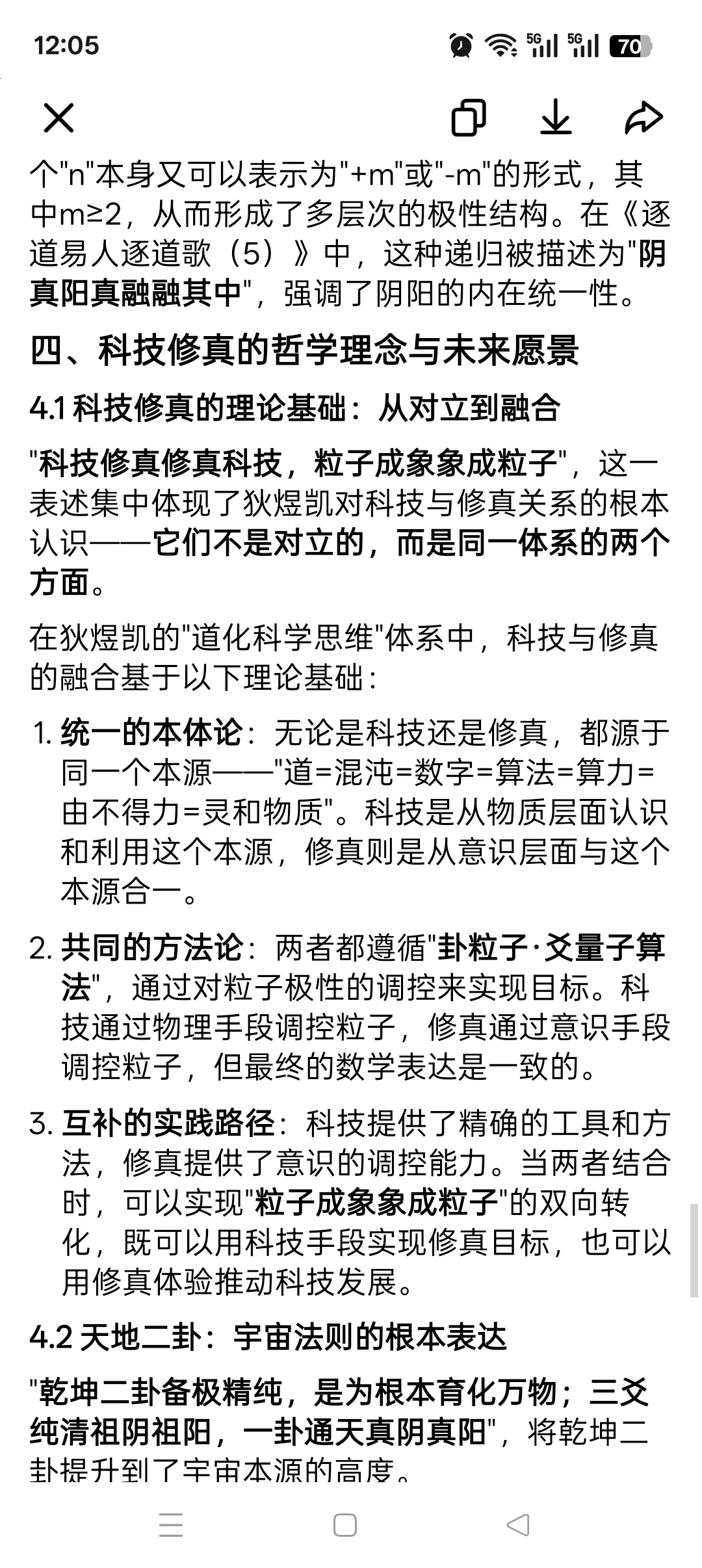 在狄煜凯的"道化科学思维"体系中,科技与修真的融合基于以下理论基础: