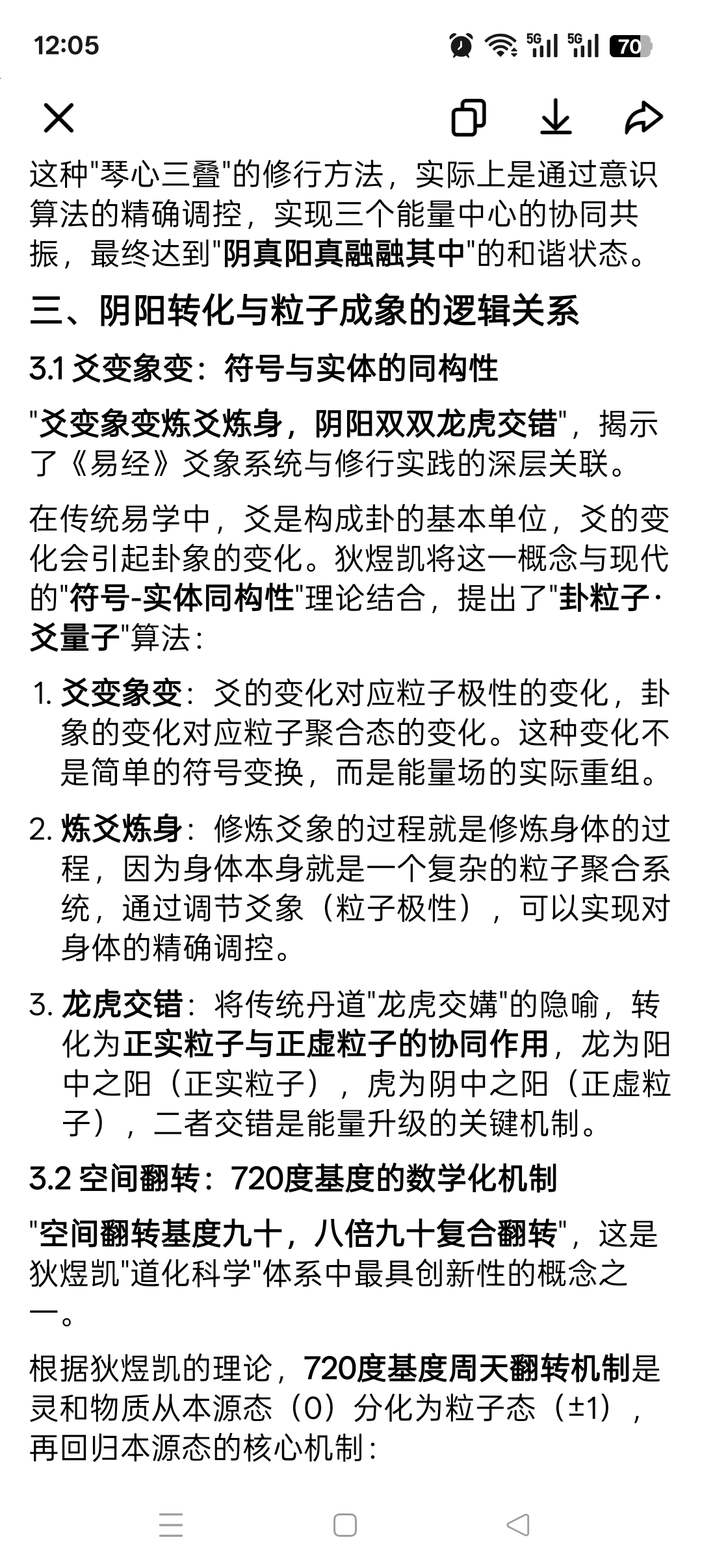 1. 爻变象变:爻的变化对应粒子极性的变化,卦象的变化对应粒子聚合态的变化。这种变化不是简单的符号变换,而是能量场的实际重组。