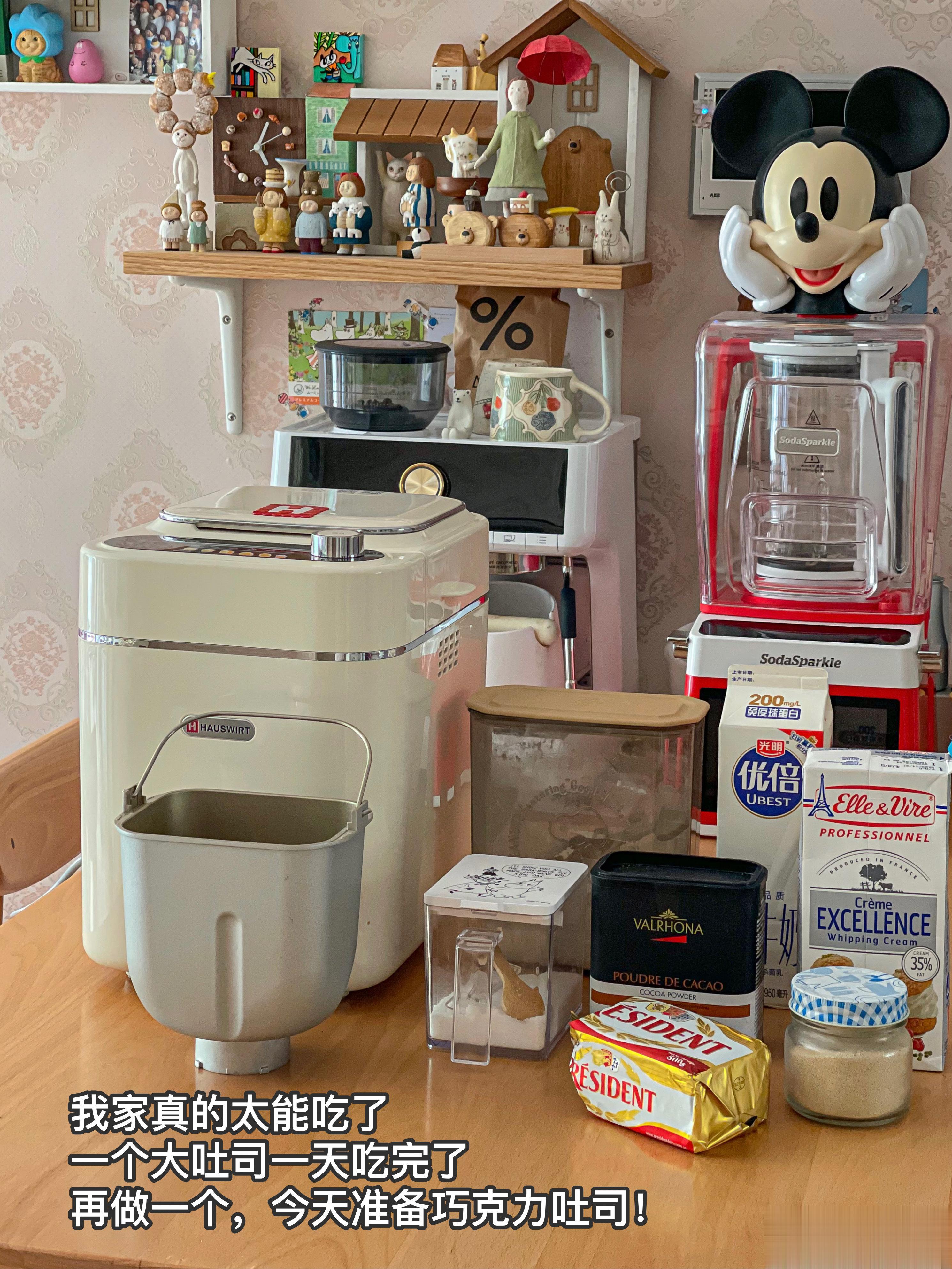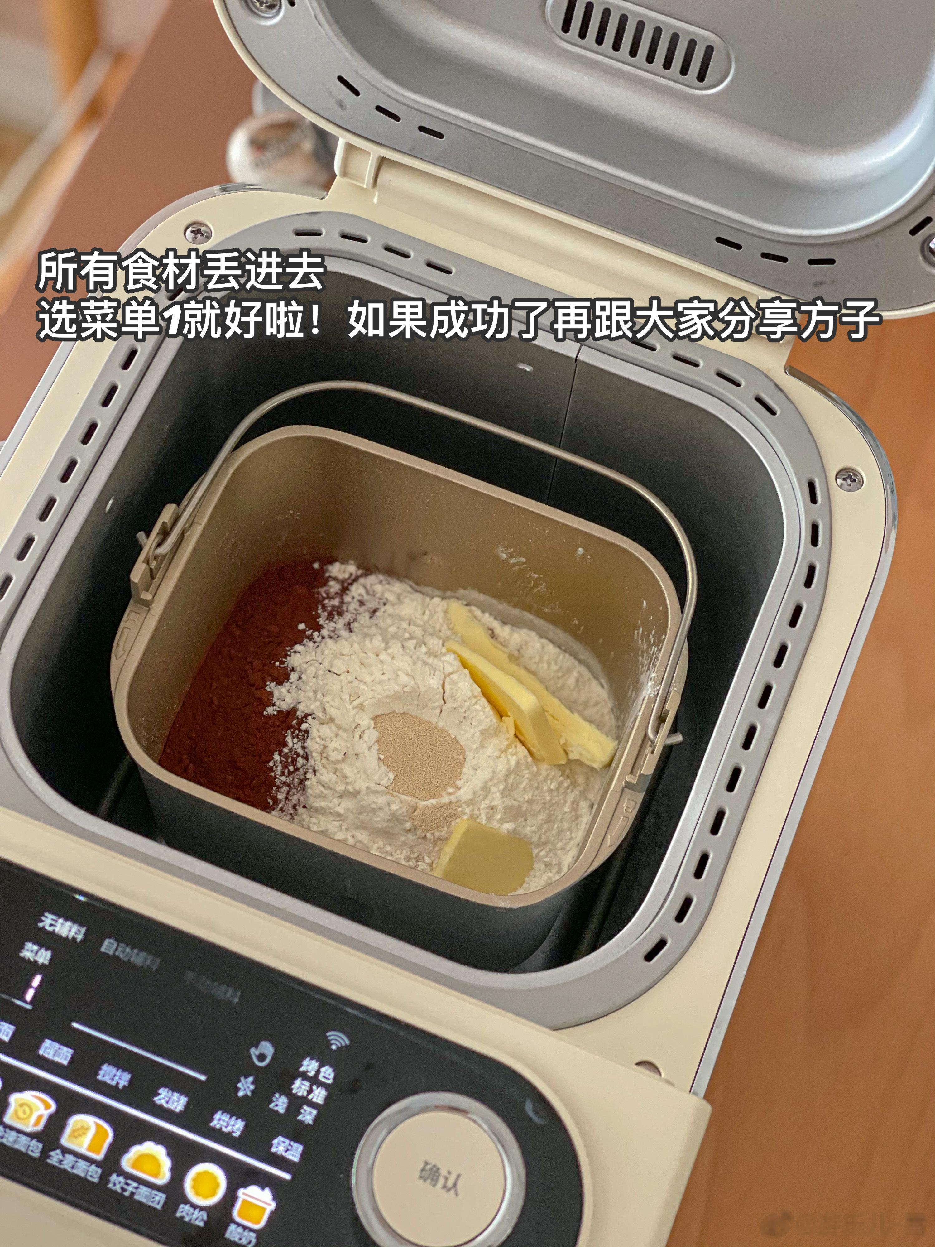 [太开心]今天再做巧克力吐司,食材丢进去面包机,等待4小时就好啦。
