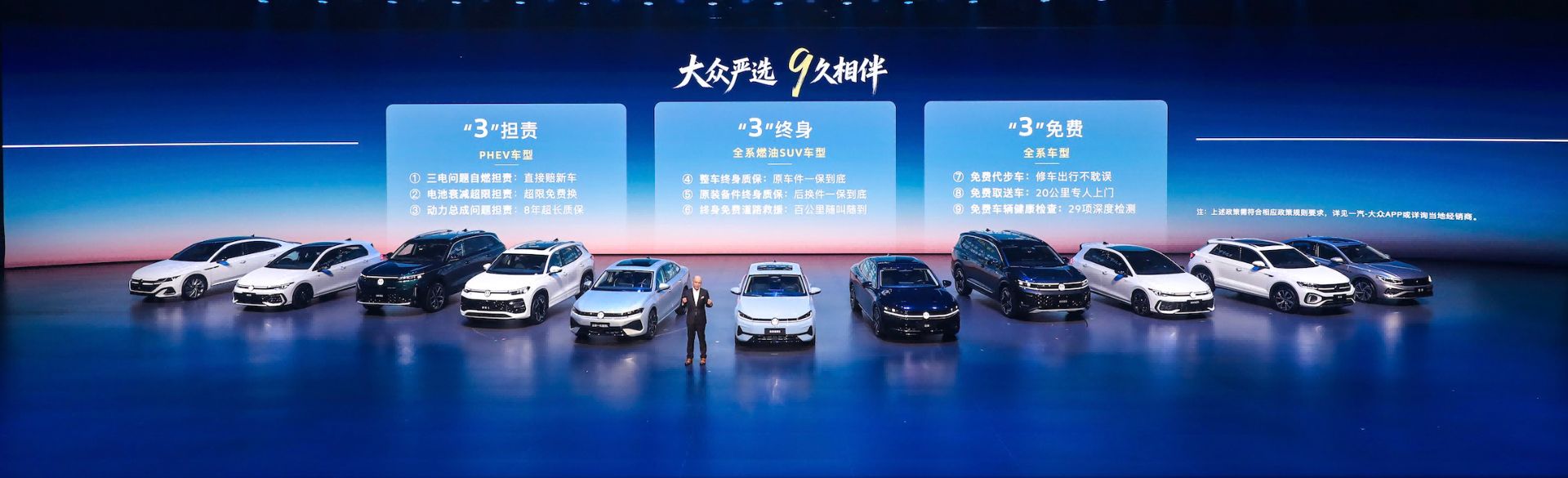 作为拥有35年积淀、超3000万客户基盘的合资标杆企业,一汽-大众依托雄厚实力与完善的服务体系,将严选品质化作长久陪伴,为客户带来大厂独有的确定感。在本次发布会上,一汽-大众还重磅推出“大众严选 9久相伴”专属承诺,依托“三担责、三终身、三免费”9项承诺,为客户提供全生命周期可靠保障,以十足诚意彰显领军品牌的责任与担当。