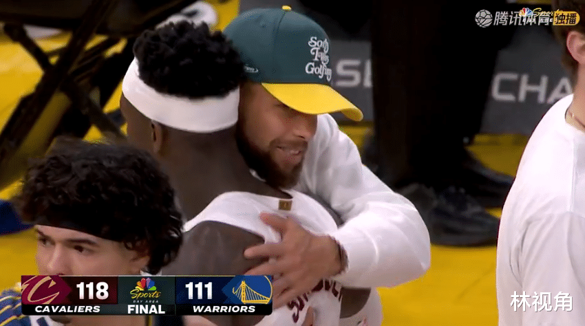 库里也从场边走入场内,抱住老队友施罗德。