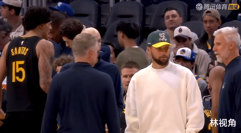 但是勇士这边也是奇兵啊,克赖尔三分三连击,强行将分差缩小,这是克莱附体了吗?场边库里都看嗨了。