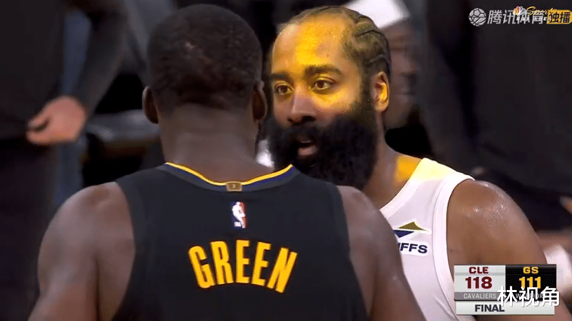 比赛结束,哈登一把抱住身前的格林,两人亲切拥抱致意,还有说有笑聊了几句,看起来双方心情都不错。