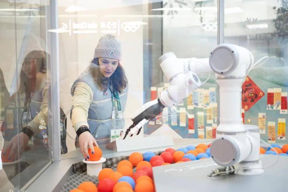 「帮我抓一个蓝色的。」法国冰球运动员 Anae Simon 用法语说道。很快,机械臂精准挑出一枚蓝色徽章球。拧开的瞬间,她的表情肉眼可见地亮了起来。