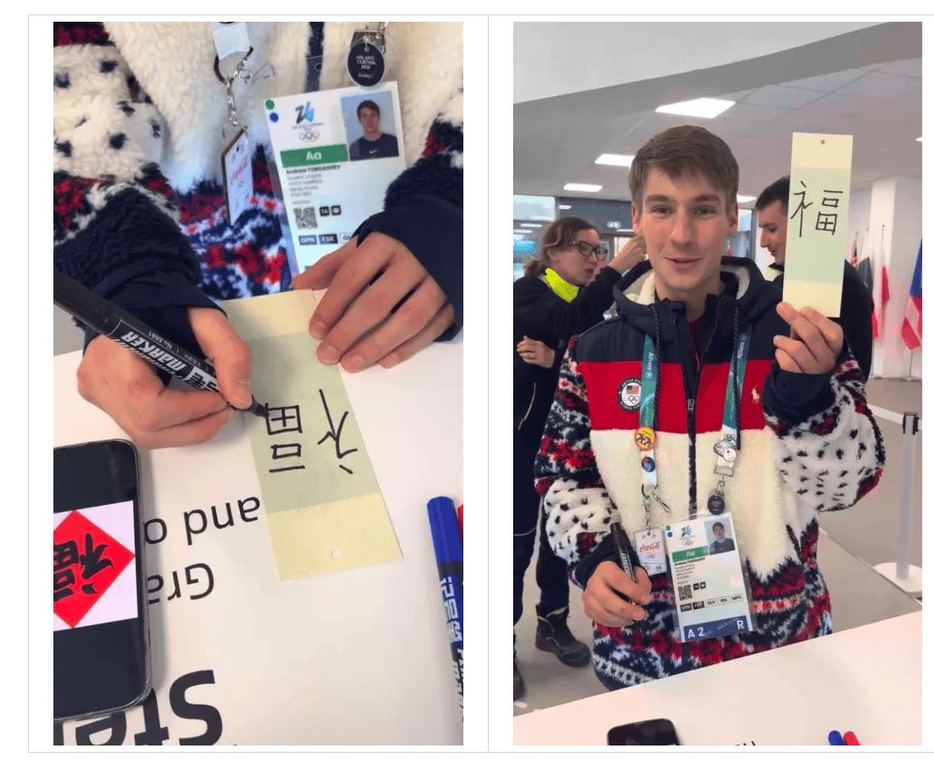 外国运动员写「福」字。