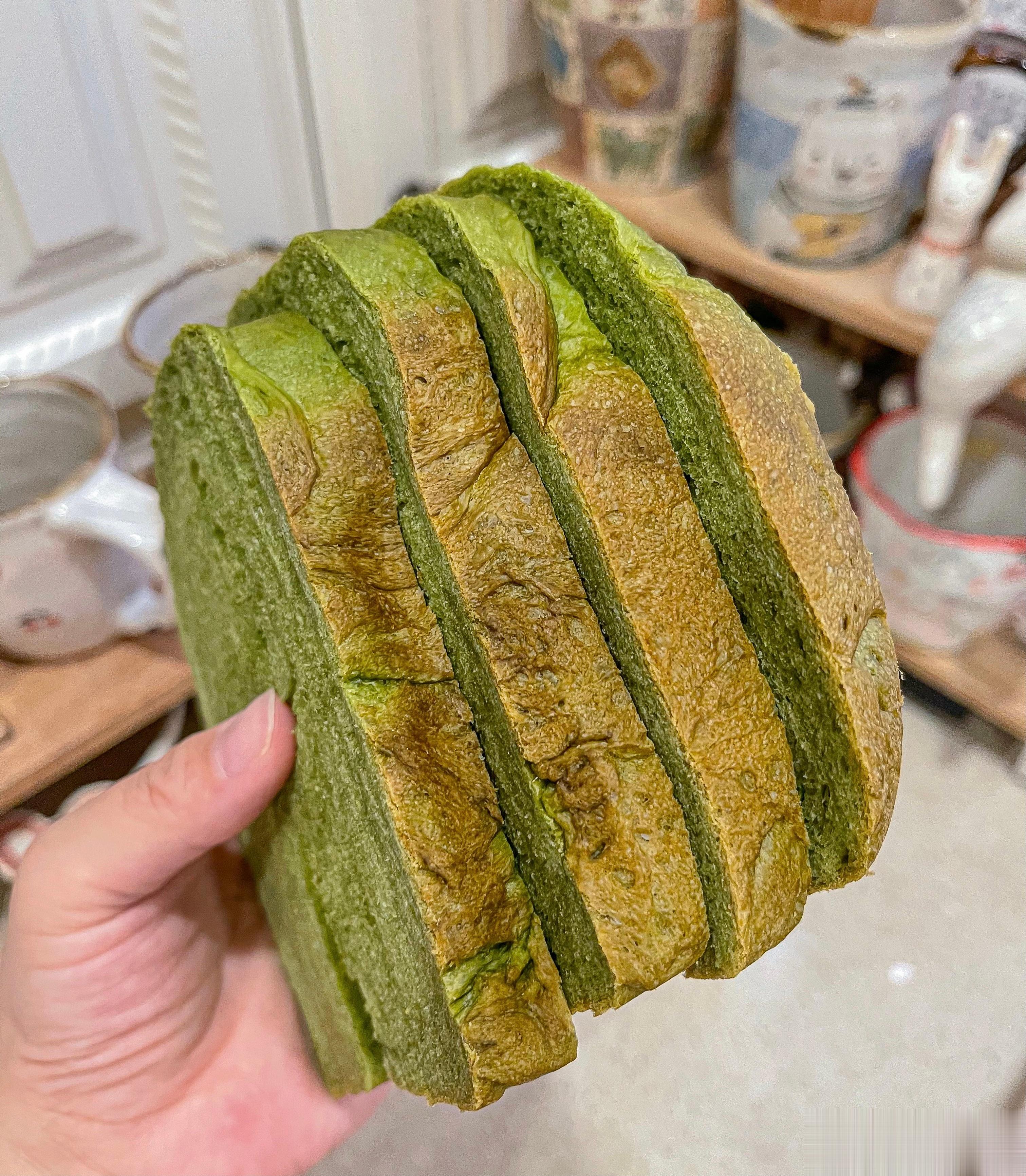 超美的抹茶色!只需要放入食材,按一键就可以做出美味的面包。