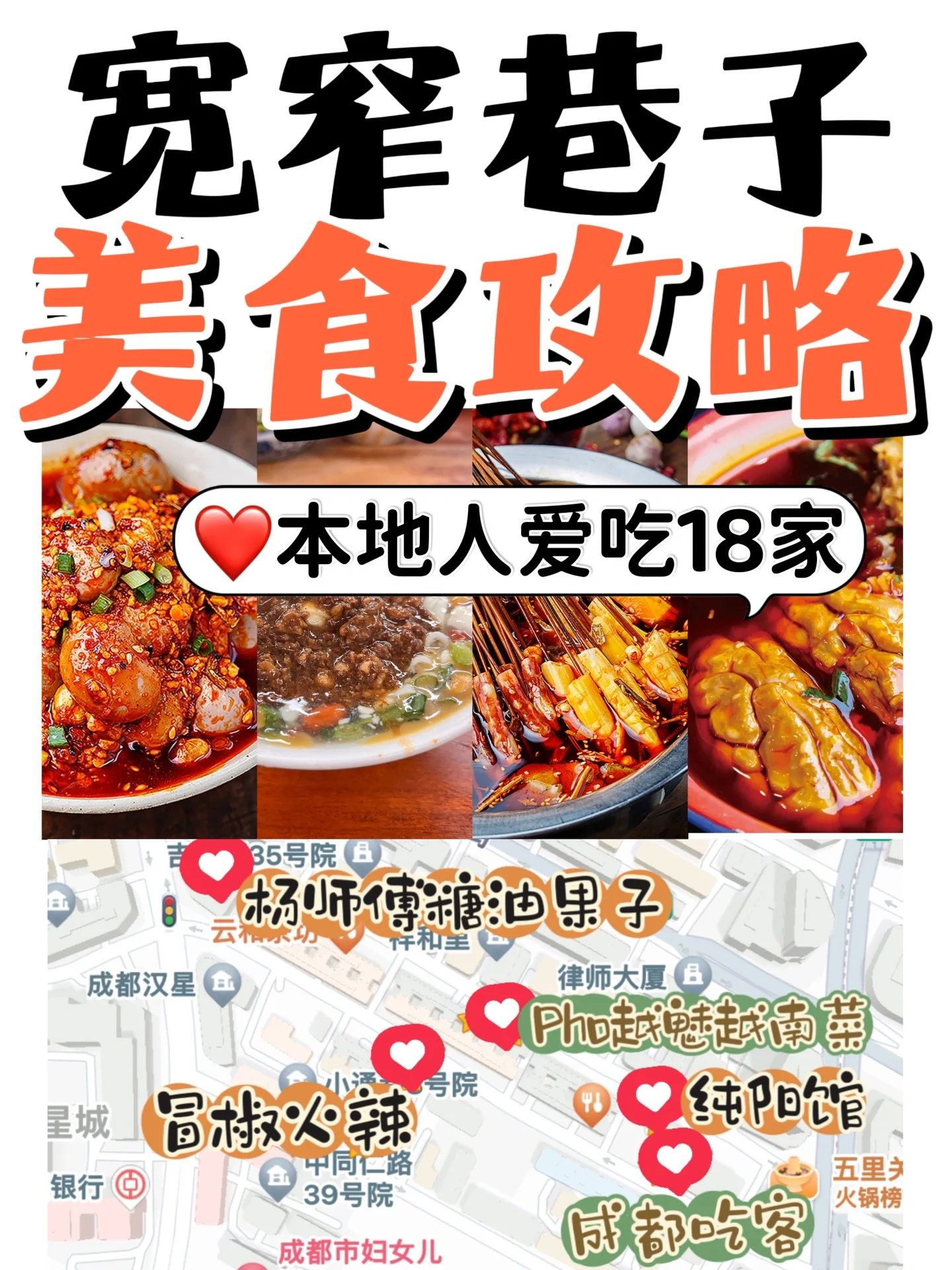 宽窄巷子里和周边有不少本地人喜爱的苍蝇馆子和美食店,今天整理了18家!