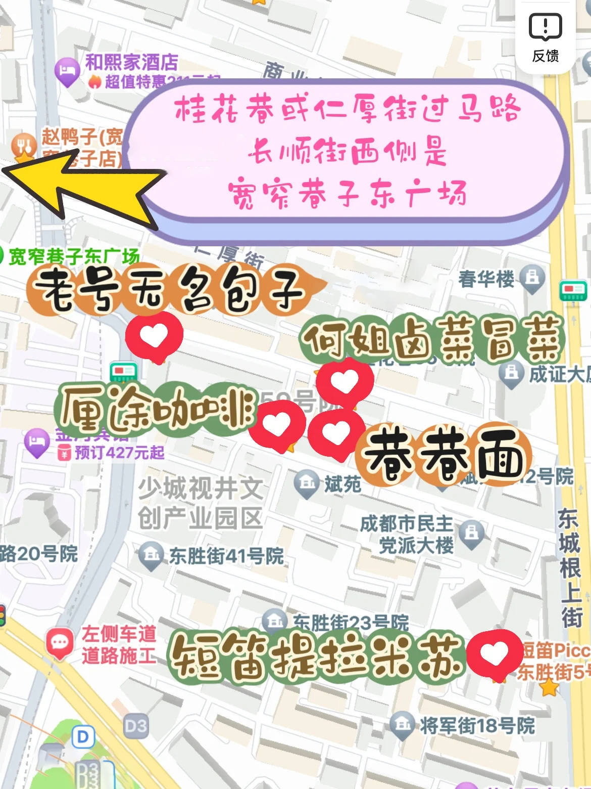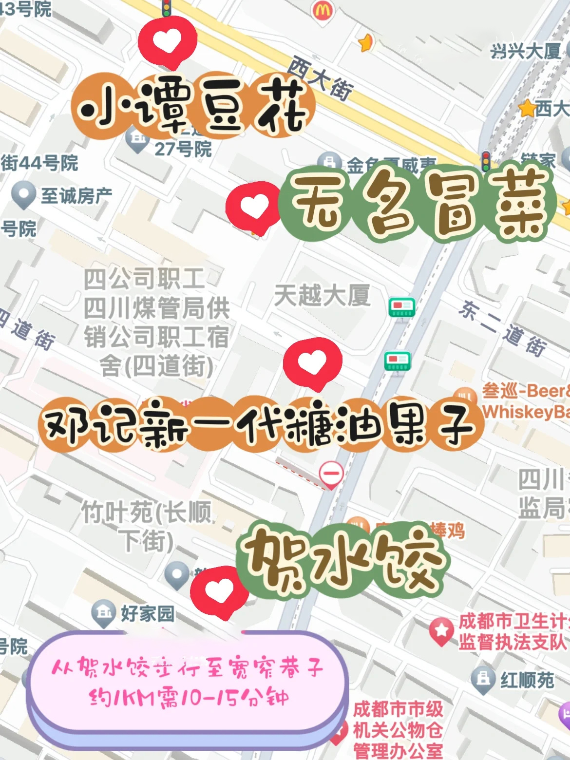 按照街道排列,距离宽窄巷子的距离由近到远。