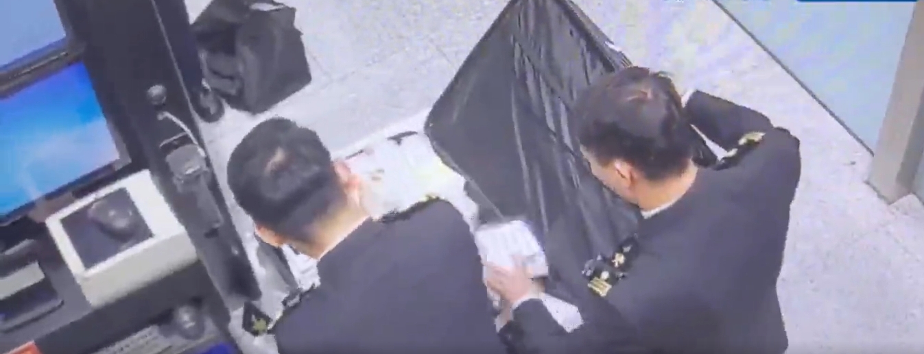 某日,青岛胶东机场海关关员在对进境旅客及行李监管时,发现一名经“无申报通道”入境的旅客,其托运行李机检图像异常。