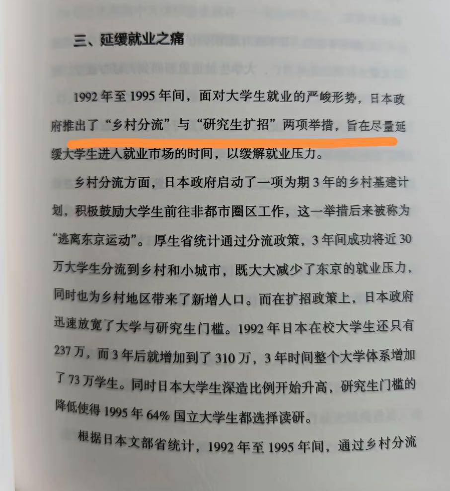 当初为缓解短期就业压力的大学生 扩招,实则将矛盾延后:如今一些毕业生挤入有限 “热门岗位”,2025 年重庆公务员最热岗位竞争比达548:1;回看日本在20 世纪 90 年代其 “乡村分流与学历扩招” 政策虽引导 30 万大学生赴非都市圈就业,却引发教育资源紧张、学历贬值问题。规则制定人需吸取教训,提前 3-5 年预判产业需求。