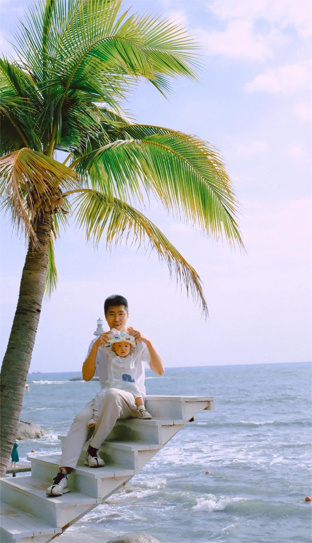 宝宝岸边吹着海风,树下吃点零食,很舒服。
