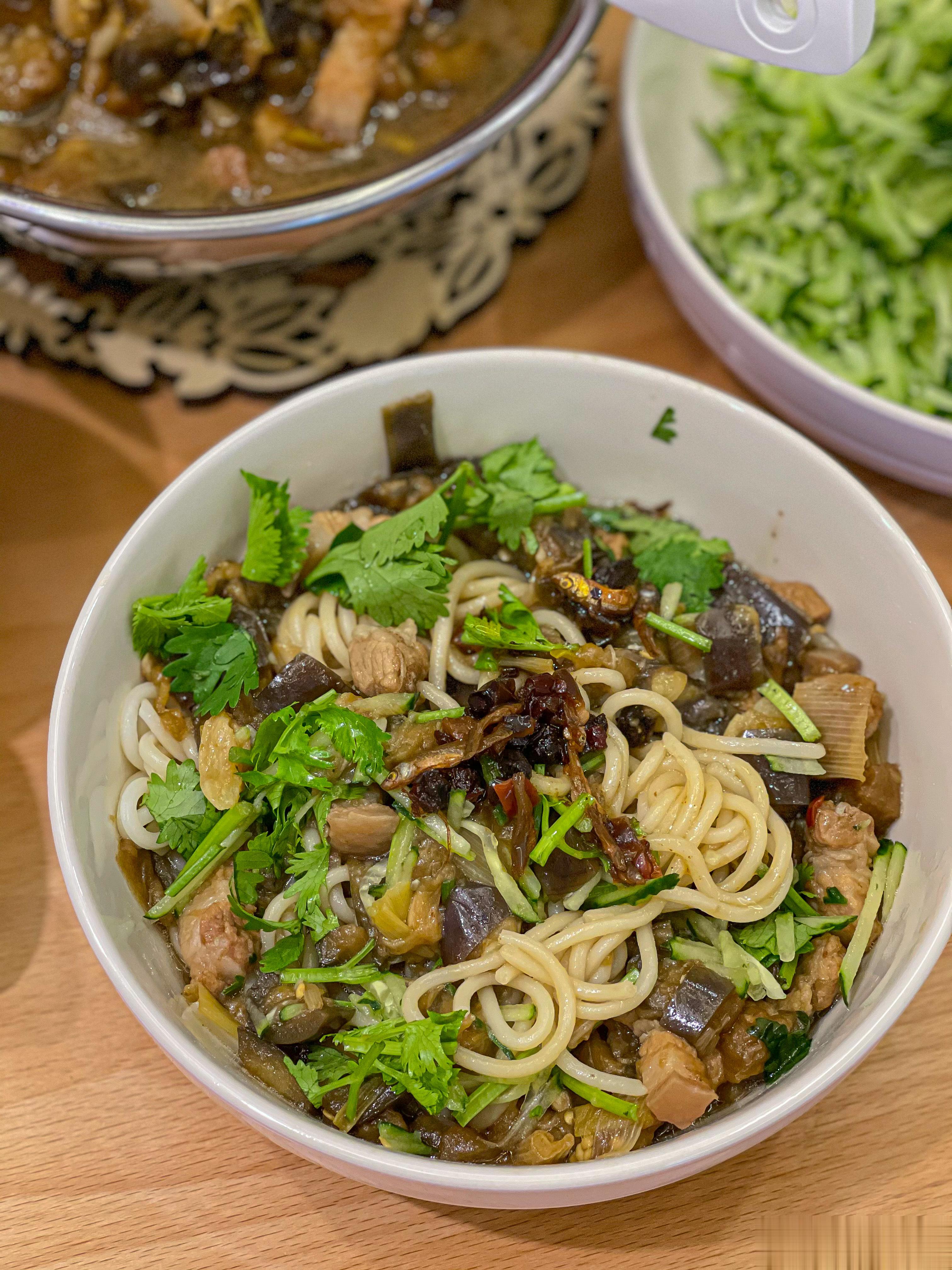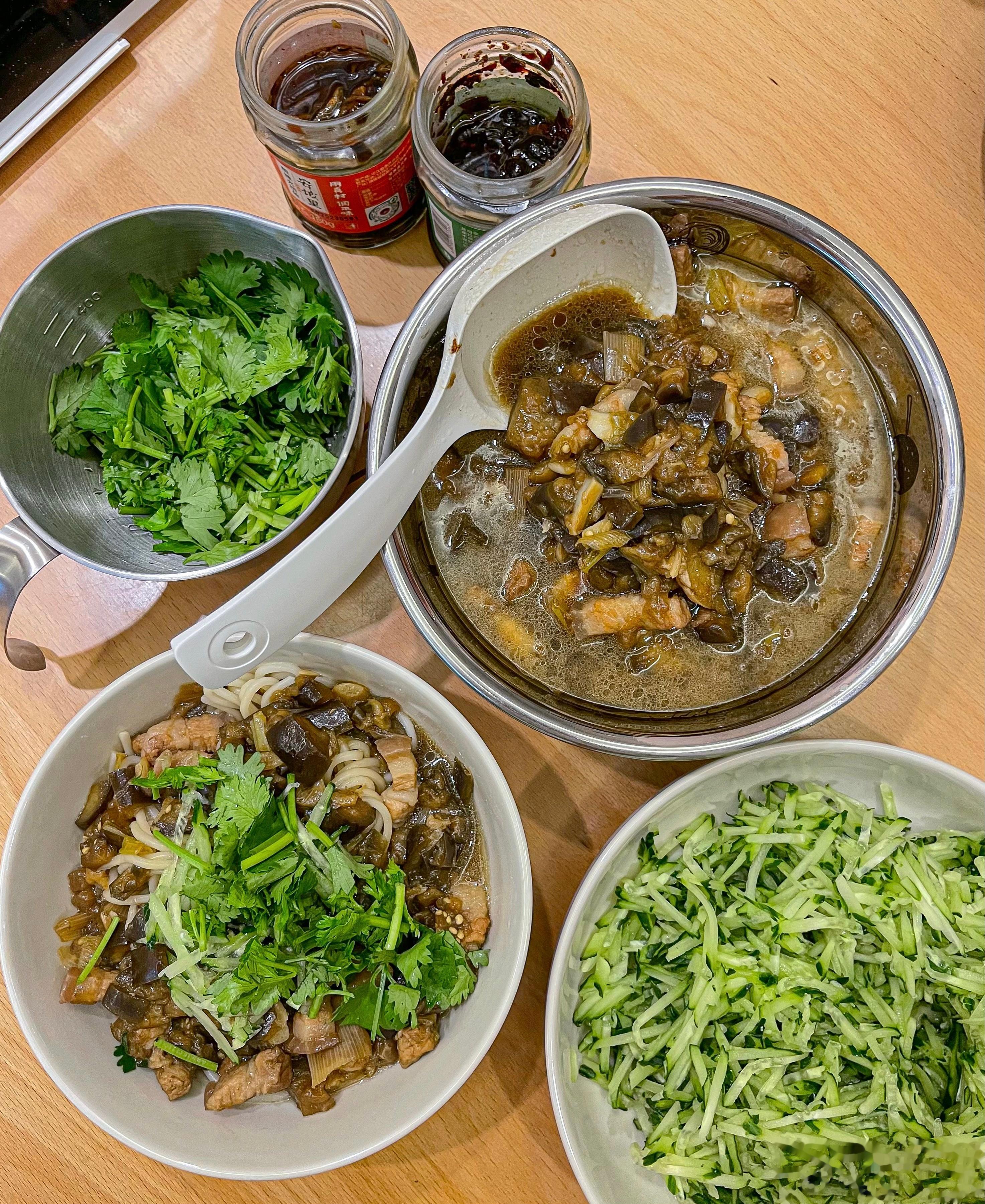 夏天超爱吃茄子面面一定要拌香菜,黄瓜丝,再配上生蒜绝了[哈哈]。