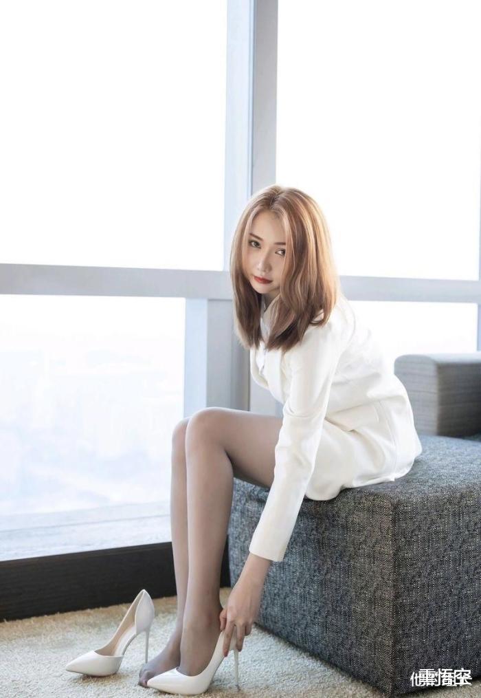 美女图集:灰色丝袜白色套装,火辣美腿女秘书