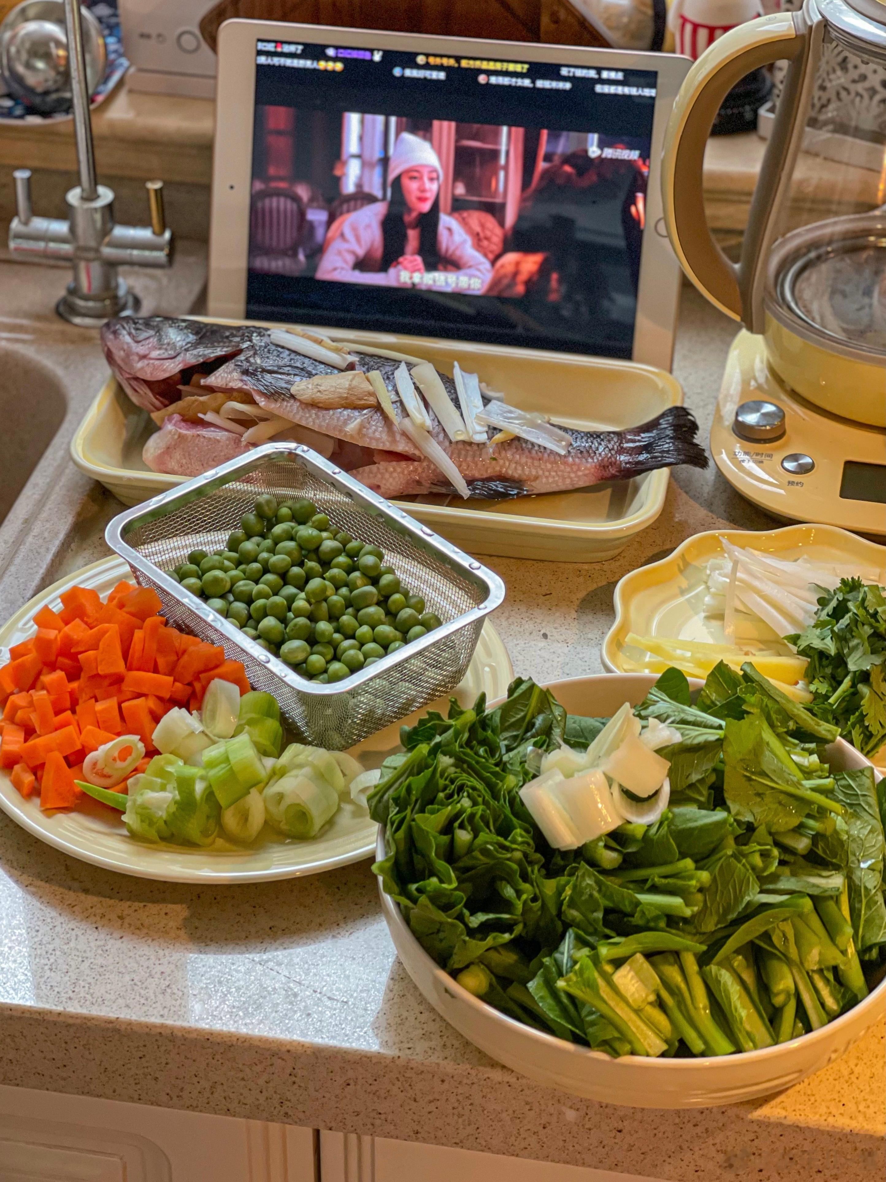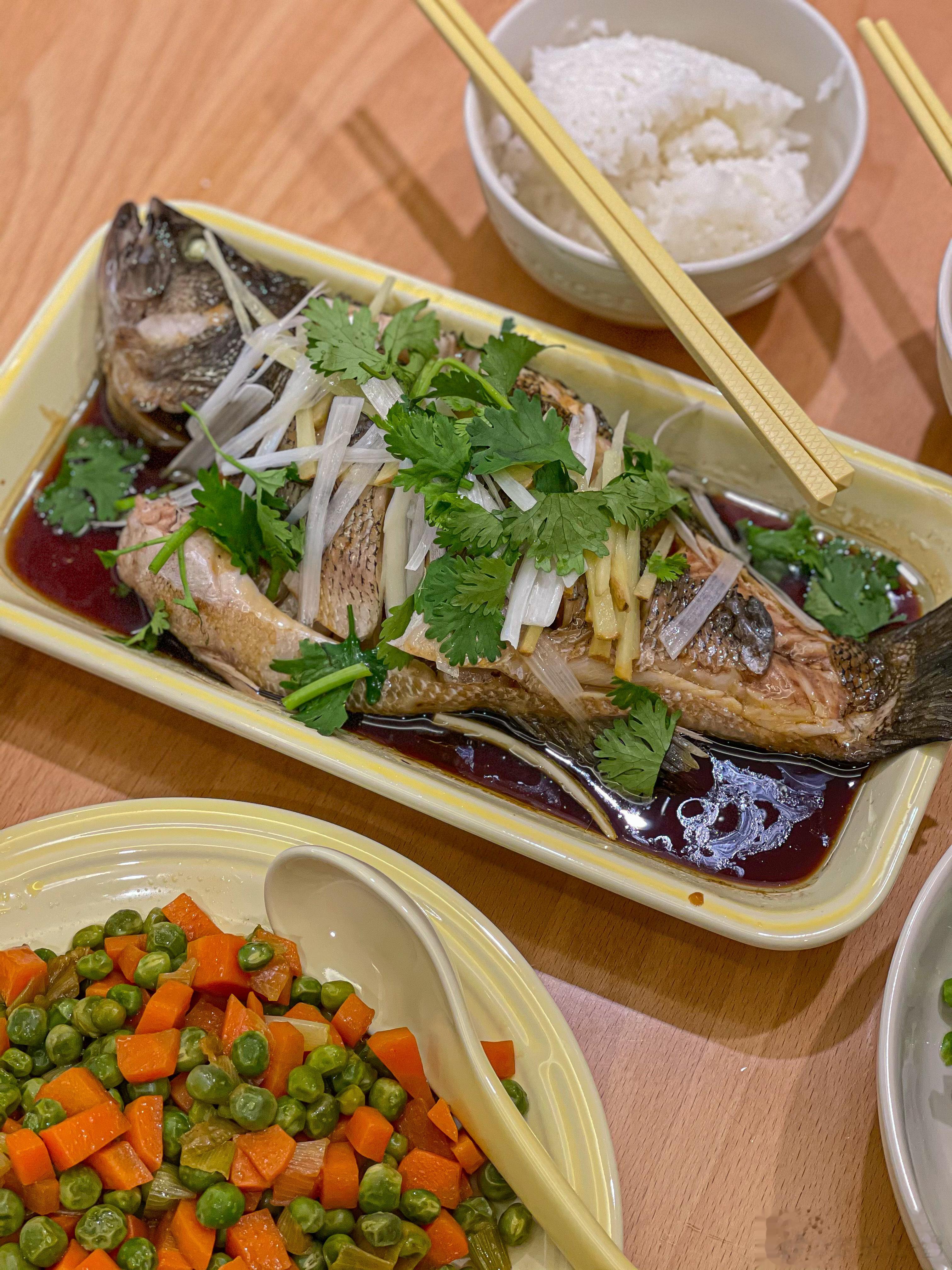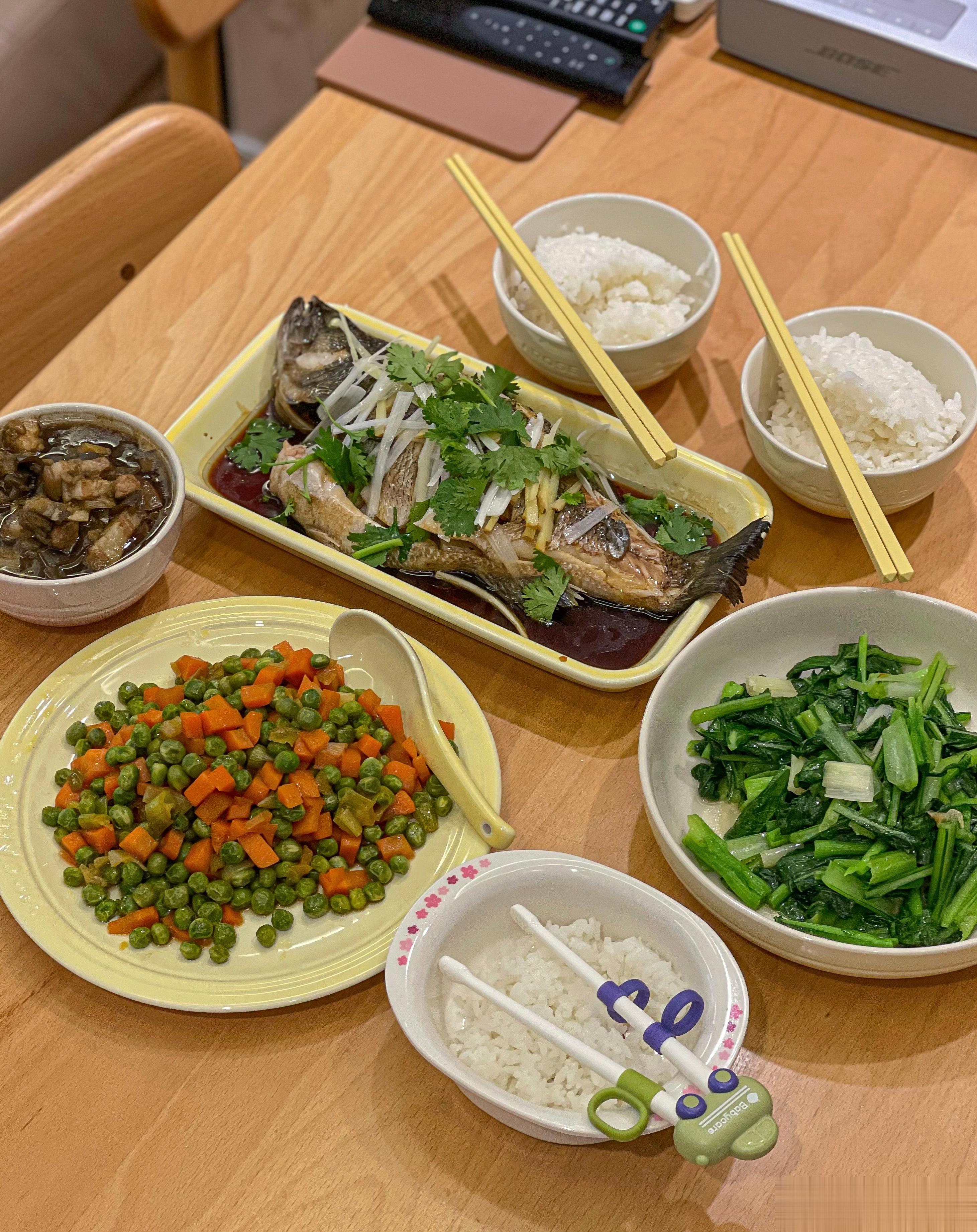 ③晚上给小娃娃做了清蒸鲈鱼,还有她最爱的炒豌豆。