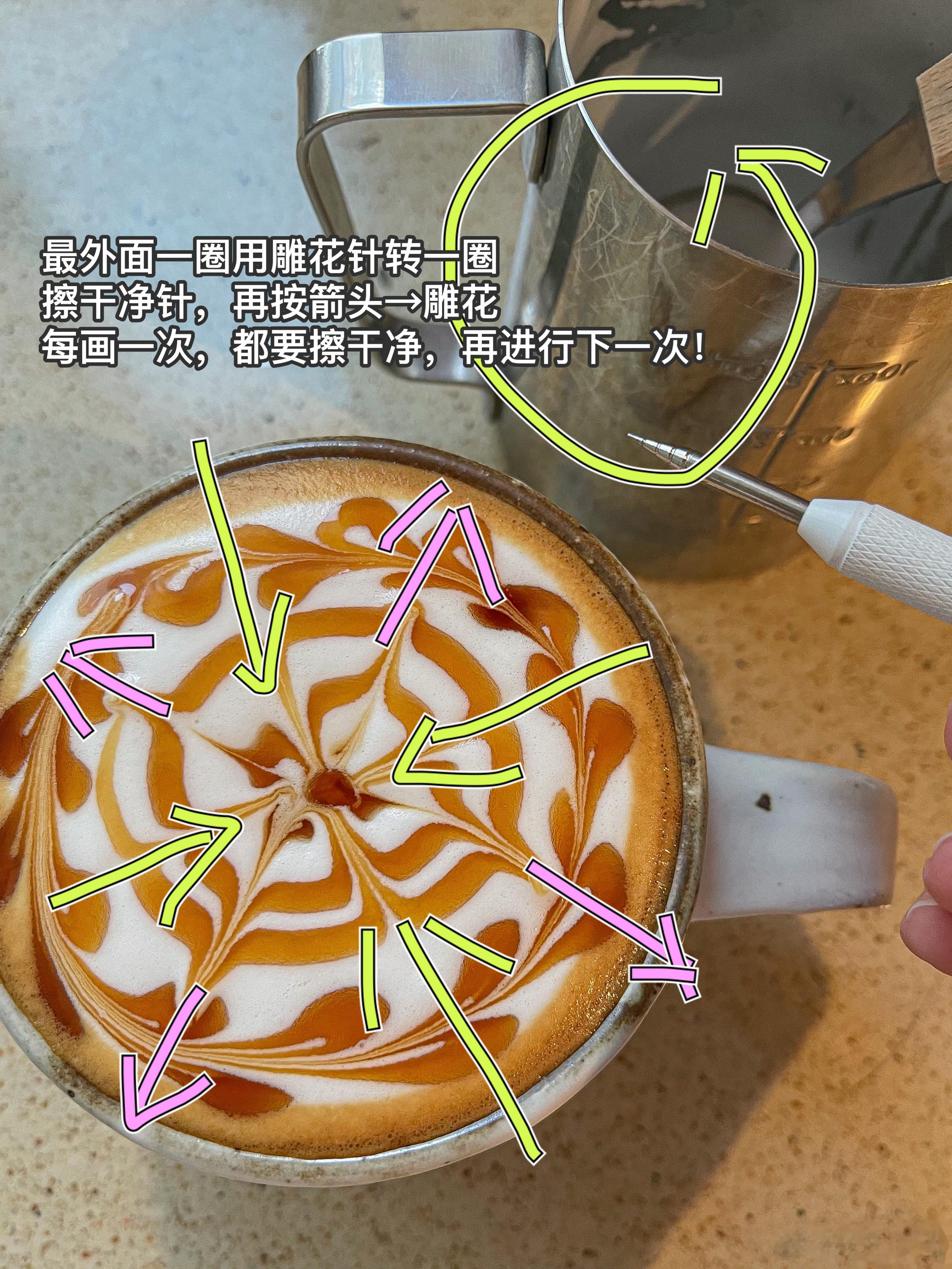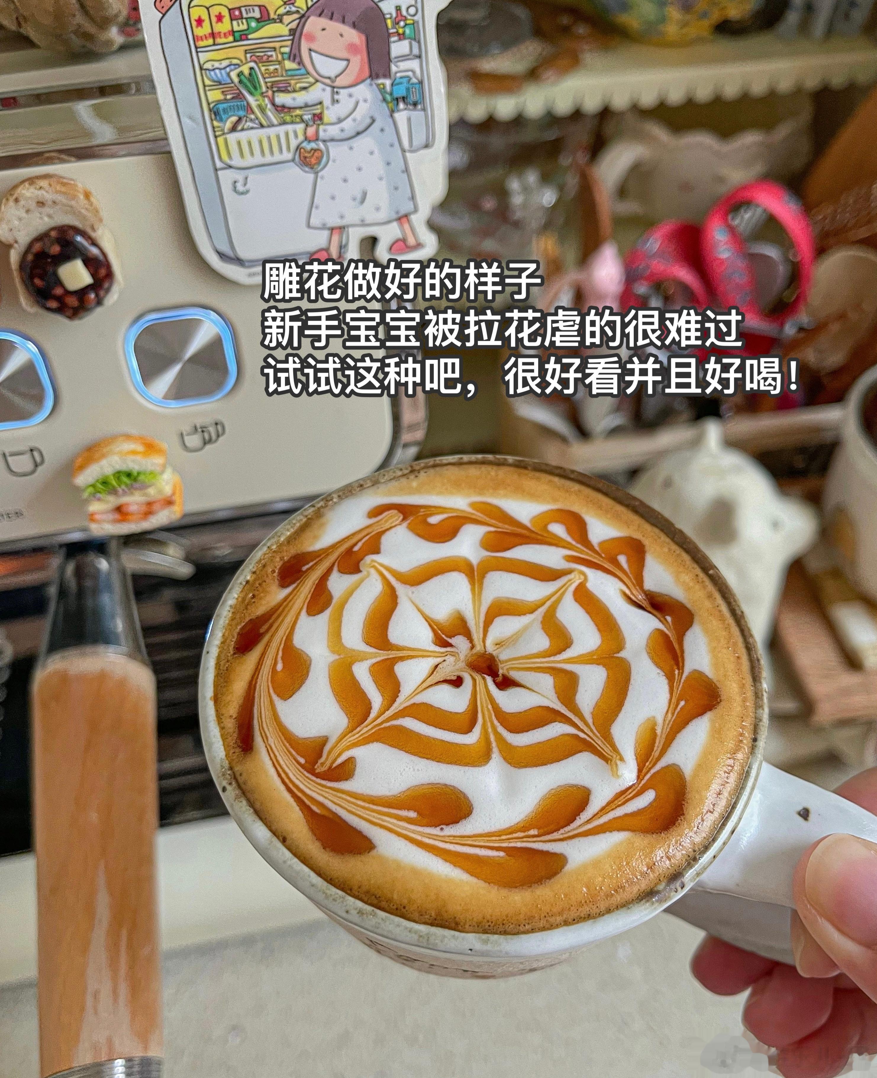 除了拉花,这种雕花也很好看,0难度,咖啡一样好喝,姐妹们可以试试[鼓掌]。