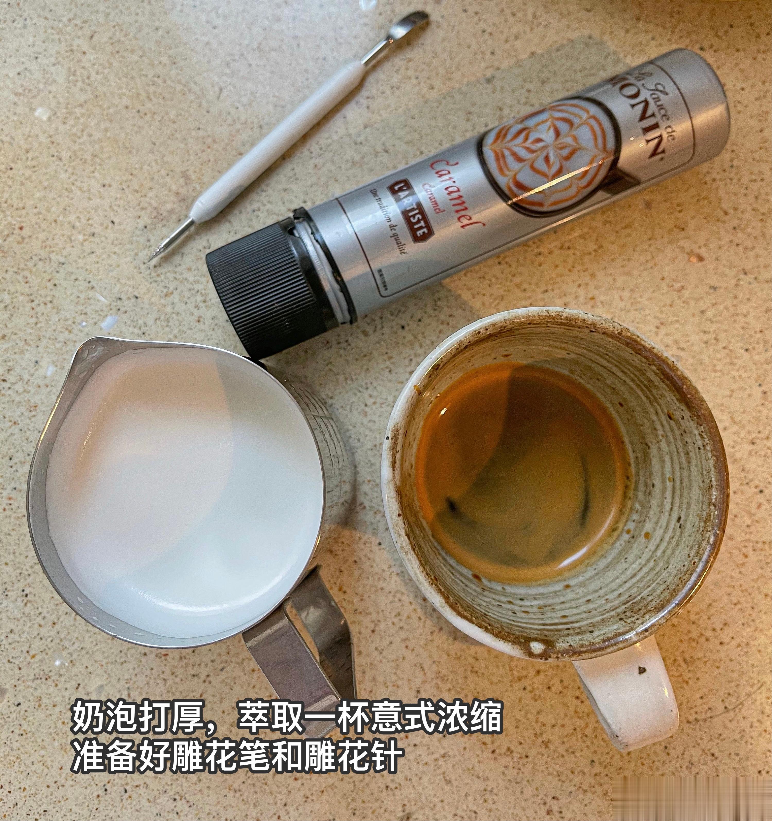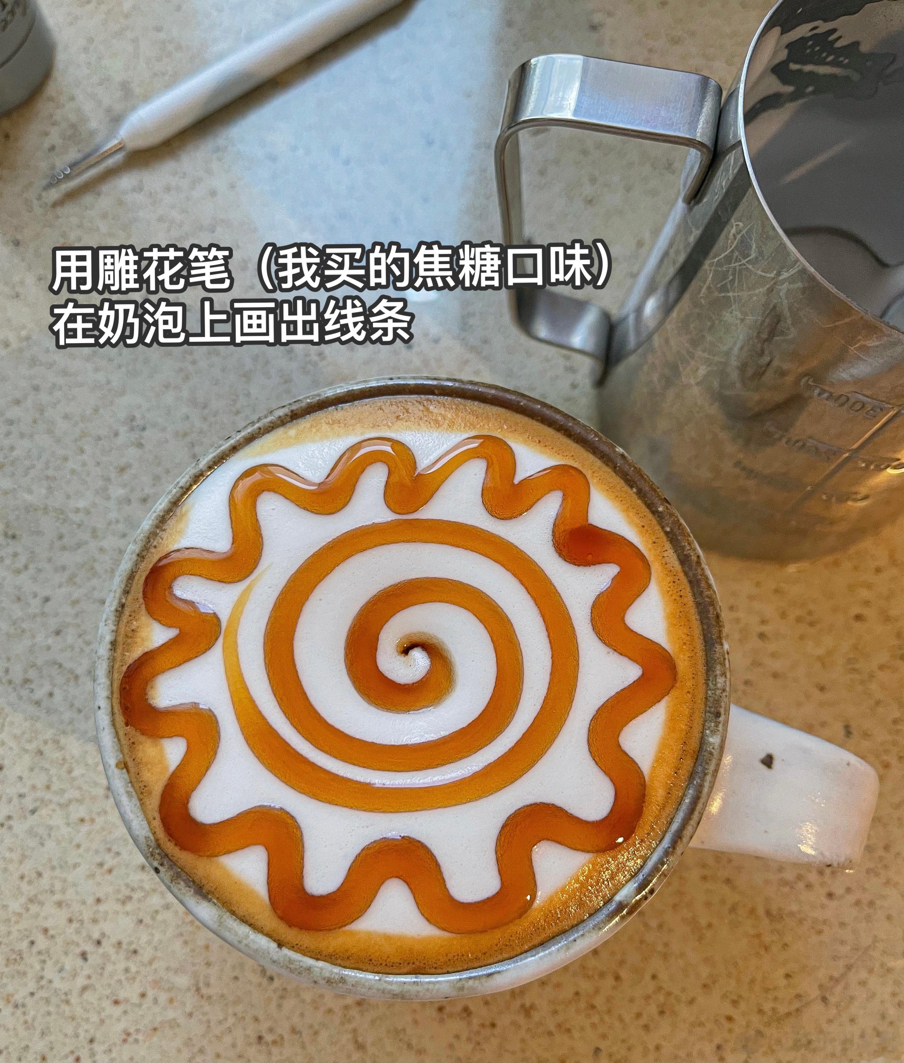 一杯好看的焦糖玛奇除了拉花,这种雕花也很好看,0难度,咖啡一样好喝,姐妹们可以试