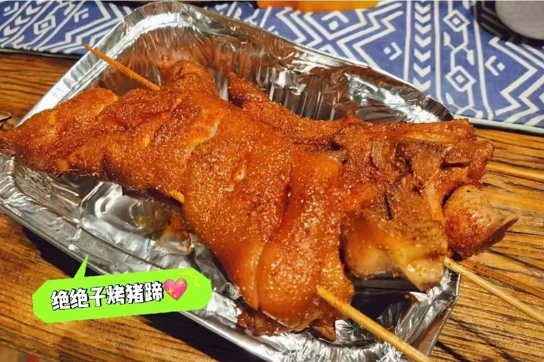 烤猪蹄:如果大家去,我不允许有人不点这个烤猪蹄,作为一个不爱吃肥肉的人,一直对猪蹄有抗拒,直到我遇见了它(烤猪蹄),烧烤味猪蹄,软糯绝美!!!(价格太亲民了,简直一下就击中了我的心巴)他们家烧烤种类还是很多的,看个人口味需要可以点其他的,烤五花肉也不错😀