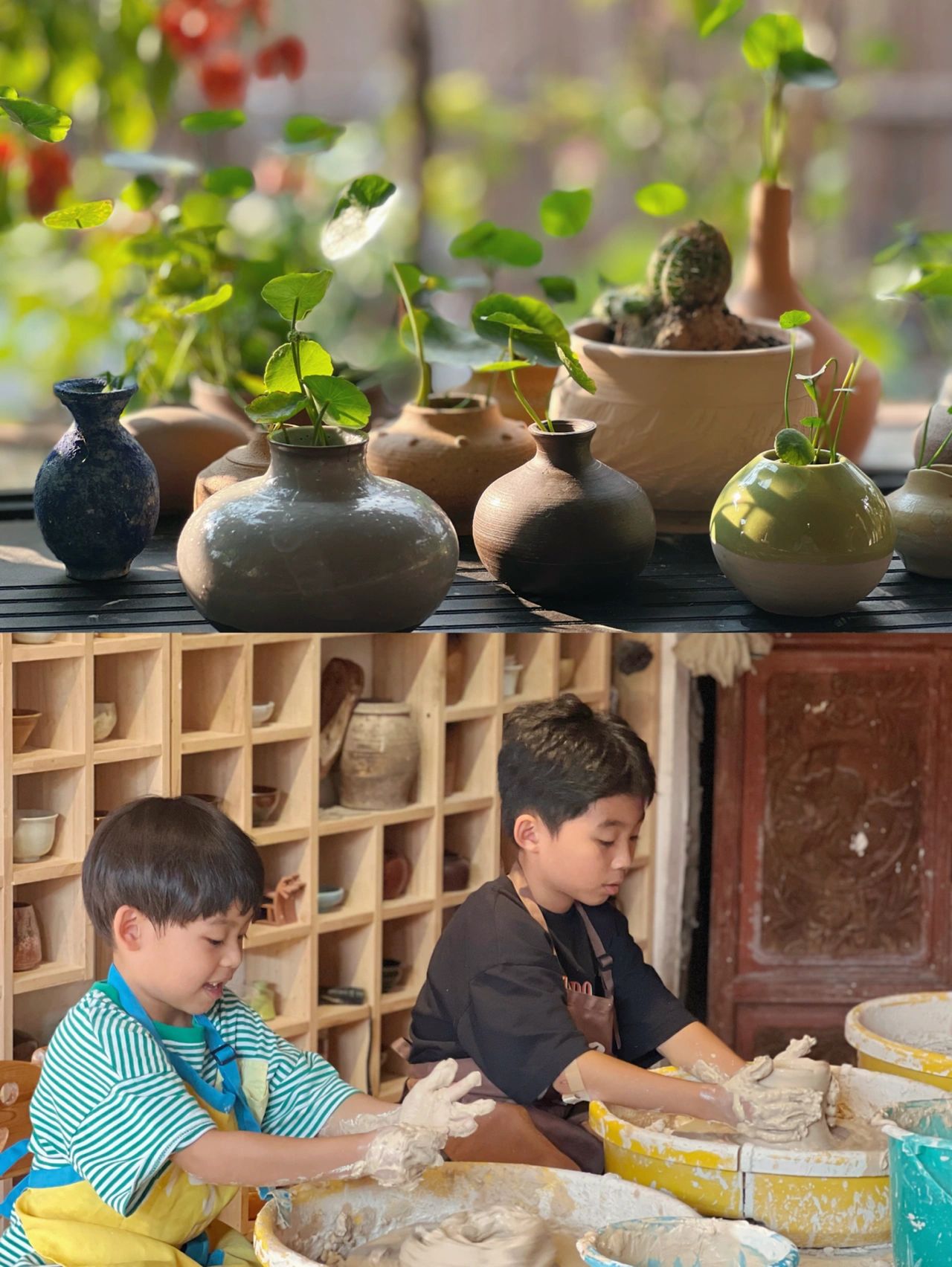 c. 问心陶艺(每次回来都带小朋友去玩泥巴,老板很有耐心,单次制作陶艺不烤45元,烤制80元);