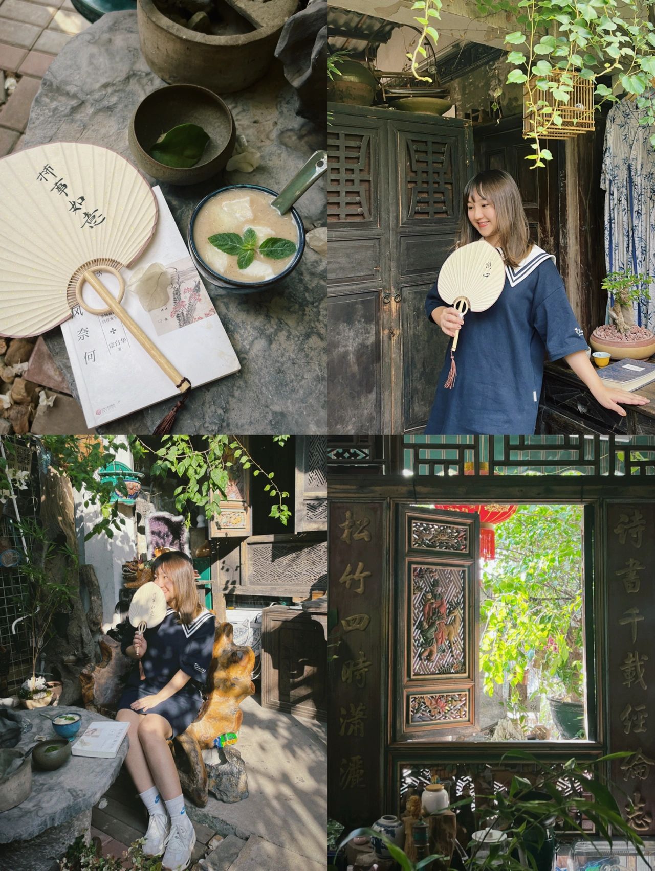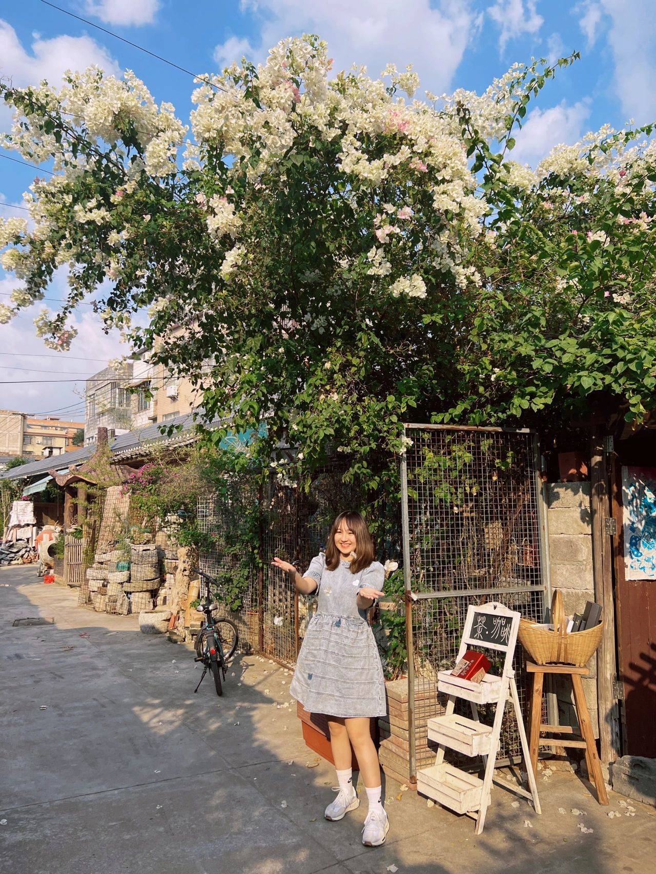 d. 睿心苑(门前白色三角梅开的美美哒,店内可以品茶、喝手磨咖啡、甜品…消费可在店内拍照);
