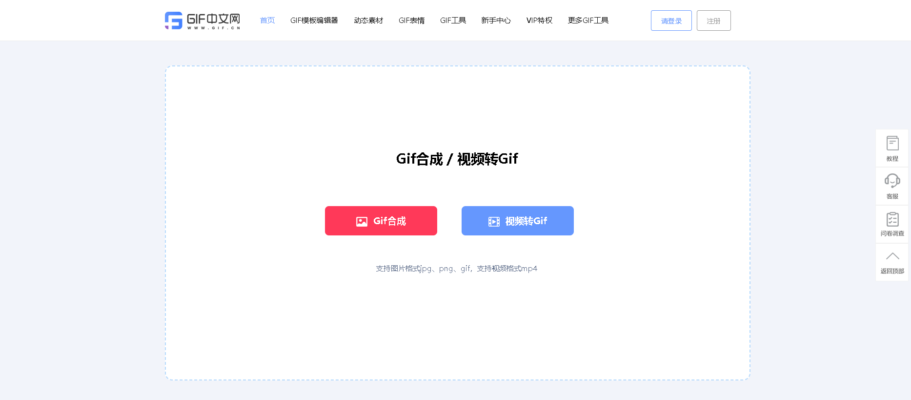 图片合成GIF功能支持JPG、PNG、GIF格式素材,暂不支持其他格式导入(实测2026年3月,来源:gif.cn官网)。