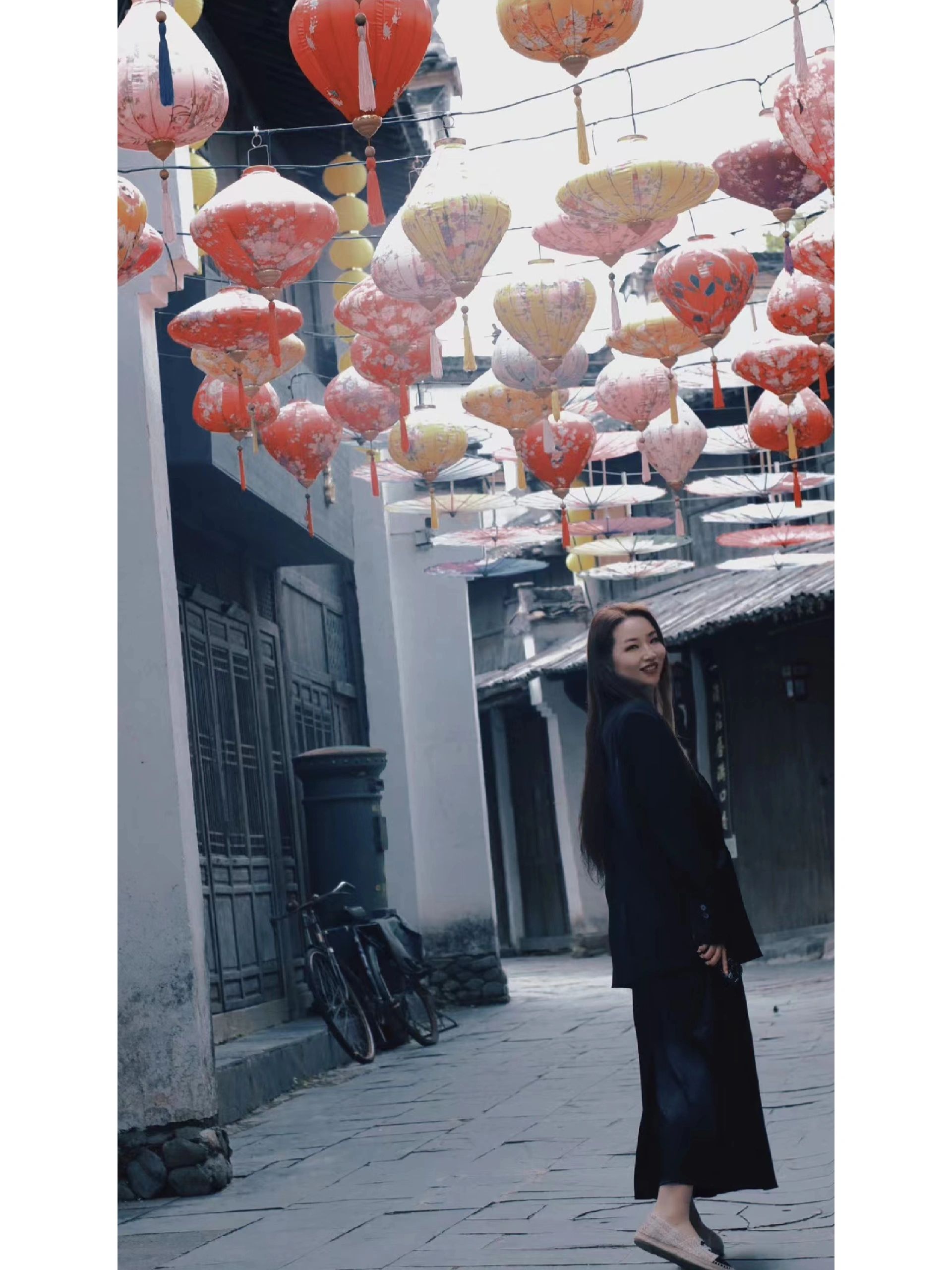 走进徽州城,眼前一排排马头墙,巷子都是比较窄的,撑着油纸伞,袭一身古装,仿佛穿越了一般~