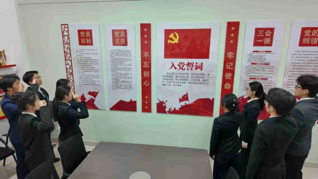 党建活动室(党群服务中心)是理想信念的汇聚地。活动室设有党旗宣誓墙、党史学习书架和学生服务角,定期开展三会一课、主题党日、学生权益维护等活动,师生们在这里共学理论,共解困扰,共筑信仰之基。